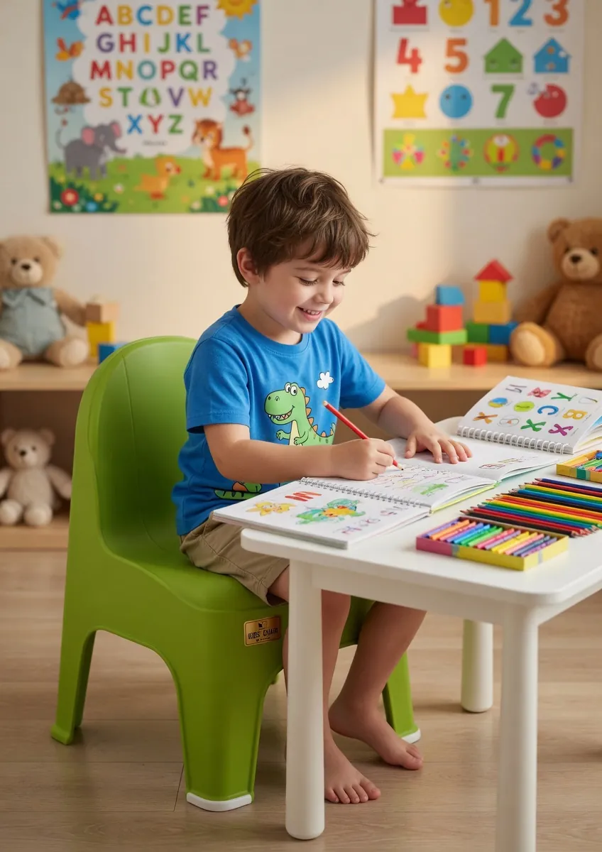 Make your child’s space more fun and comfortable with our special Kids' Chair. We have designed this chair to be the perfect size for toddlers and young children. It is made from high-quality, strong plastic that is very tough, so it won’t break easily even if your child plays rough.The bright green color makes it look great in any room, and its smooth design makes it very safe for little ones. It is very light in weight, so your child can easily move it around the house themselves. Whether they need a seat for coloring at a table, watching cartoons, or having their snacks, this chair is the best choice. It is also very easy to clean—just wipe it with a damp cloth, and it looks new again! Give your child their own special chair that is just the right size for them.