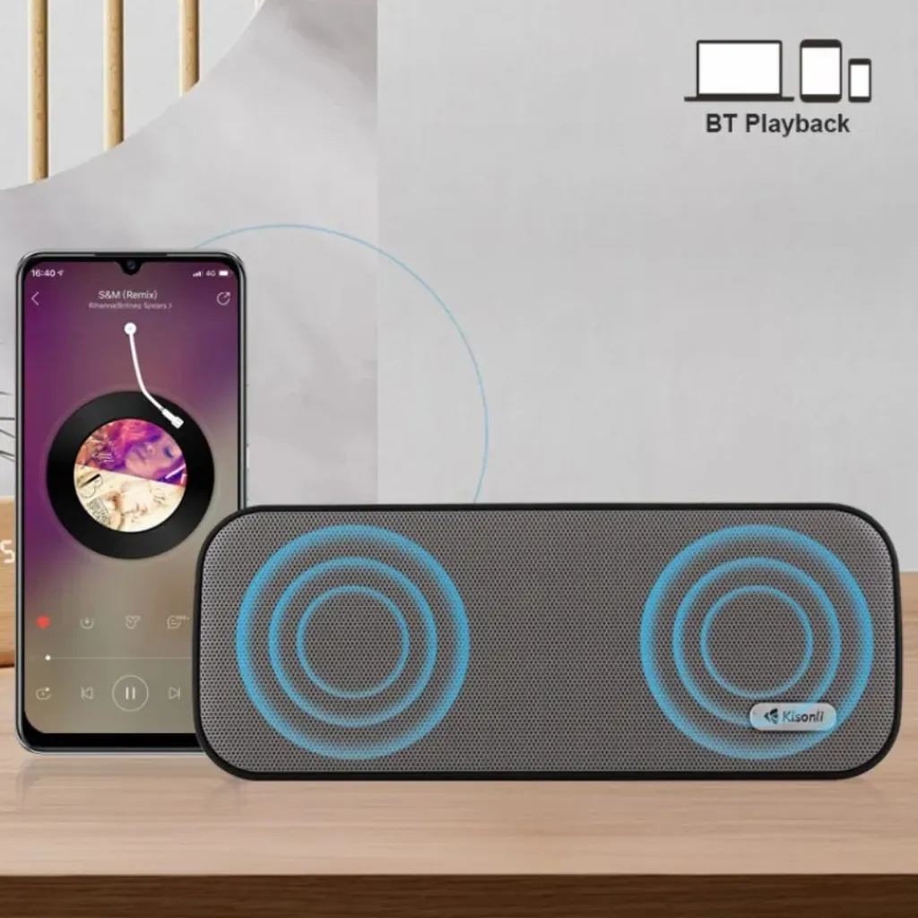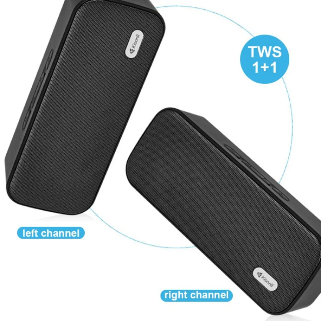 The Kisonli KS-2002 is built for versatility — enjoy your favorite music wirelessly via Bluetooth, tune in to your favorite radio with FM mode, or play from USB, TF card, or AUX input. With TWS (True Wireless Stereo) technology, you can connect two speakers together for an even more powerful stereo experience.