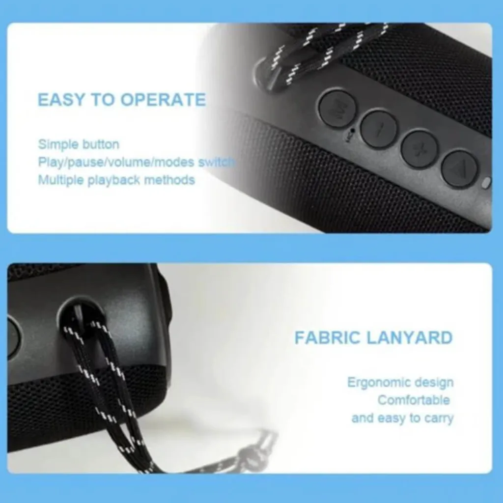 The Q22 Plus offers complete versatility with Bluetooth, FM radio, USB, TF card, AUX input, and TWS connectivity, allowing you to connect effortlessly to any device or enjoy your favorite tunes from multiple sources. Its IPX6 waterproof design ensures protection against splashes and rain, making it ideal for poolside parties, beach trips, camping, or outdoor use.