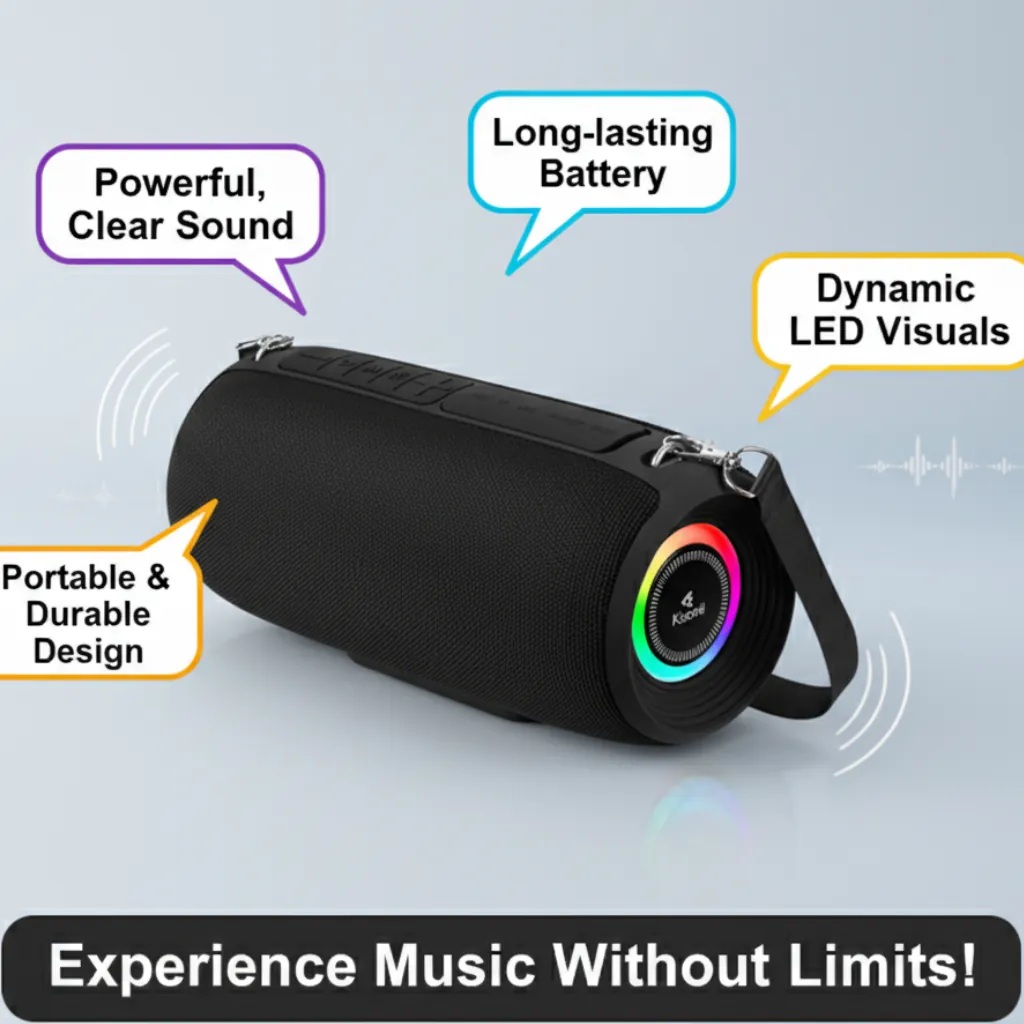 Bring your music to life with the Kisonli Q28 10W Super Bass Bluetooth Speaker — designed for crystal-clear sound, portability, and vibrant RGB lighting. With a powerful 10W output, the Q28 delivers rich stereo sound and deep bass that fills any room or outdoor space with energy.