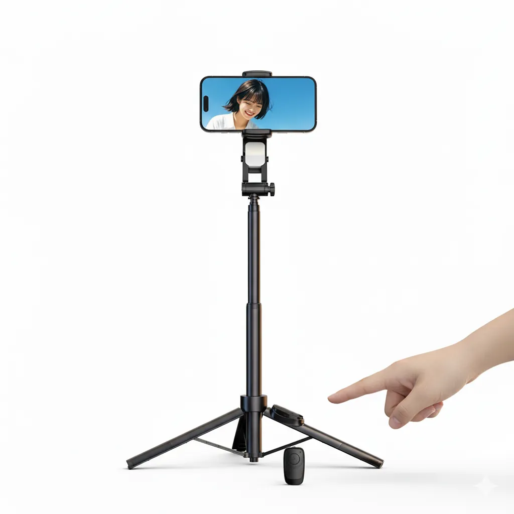 The L08 is a revolutionary all-in-one smart selfie stick and gimbal designed for content creators who demand smooth, hands-free shooting. Powered by advanced AI face and body tracking technology, the 360° rotatable gimbal head automatically follows your movements—no app required—ensuring you stay perfectly framed during vlogs, live streams, or video calls. The sturdy aluminum alloy pole extends from a compact 19cm to a full 160cm (1.6 meters) for wide-angle group shots or high-angle perspectives. It transforms into a stable tripod with fold-out legs for time-lapses, Zoom meetings, or long-exposure photography. A detachable Bluetooth 5.0 remote (10m range) lets you trigger shots wirelessly, while the included rechargeable clip-on LED fill light with 3 brightness levels ensures flattering illumination in any environment. The universal phone holder fits 4.7–7 inch devices with 360° rotation and 203° flip for vertical/horizontal modes. Foldable, lightweight, and powered by a built-in 450mAh battery (up to 5 hours use), it’s the ultimate portable companion for TikTok, Instagram Reels, YouTube, or travel vlogging.