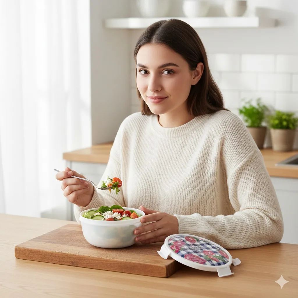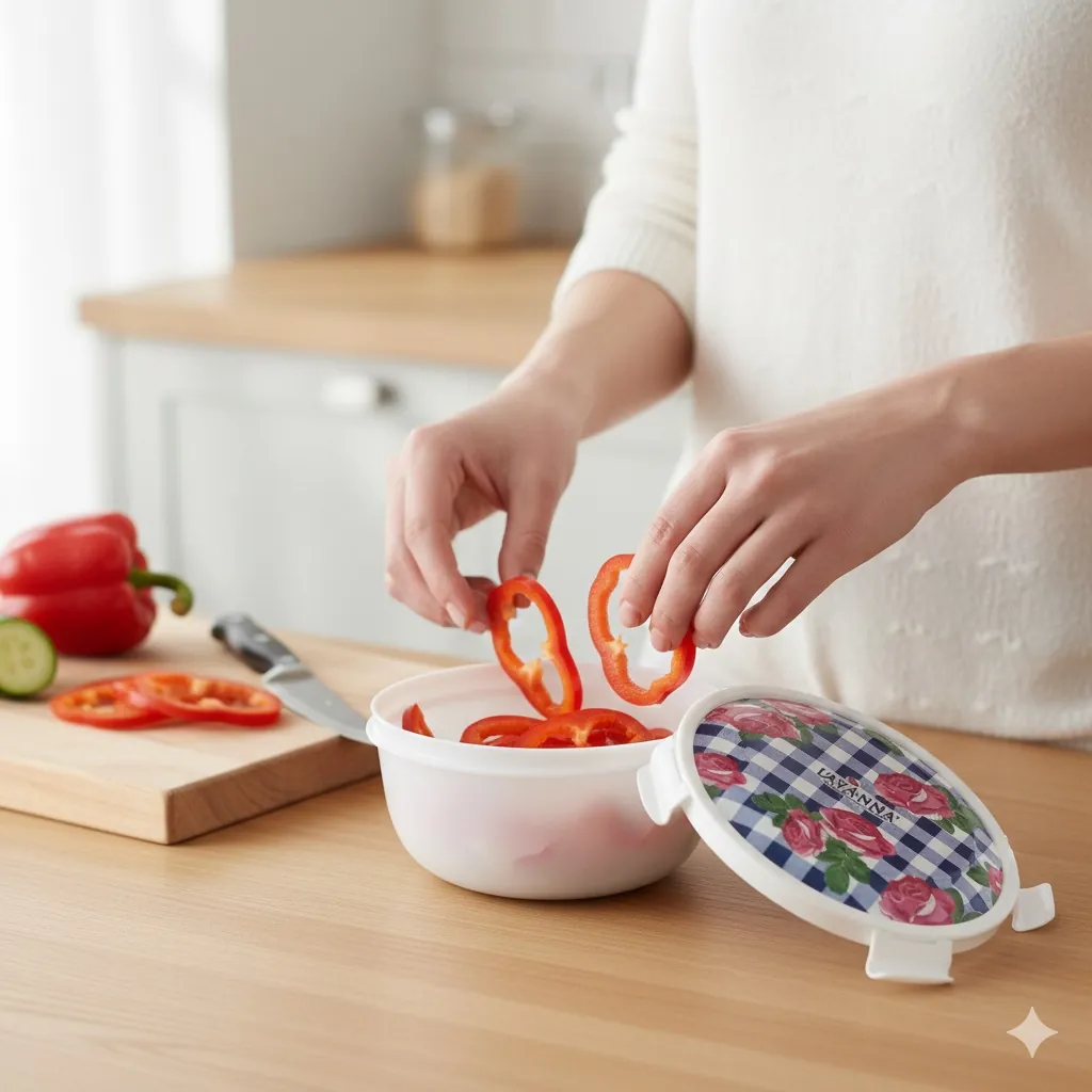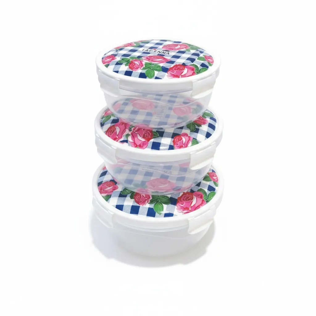 Lavenna 3-Piece Airtight Food Storage Container Set – Floral Rose Gingham Design, BPA-Free Stackable Plastic Bowls with Soft-Lock Lids