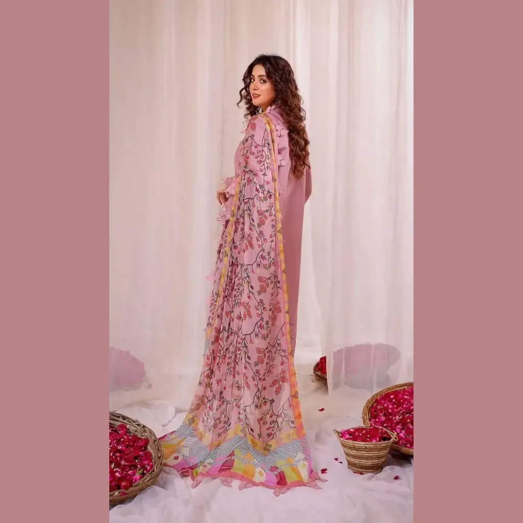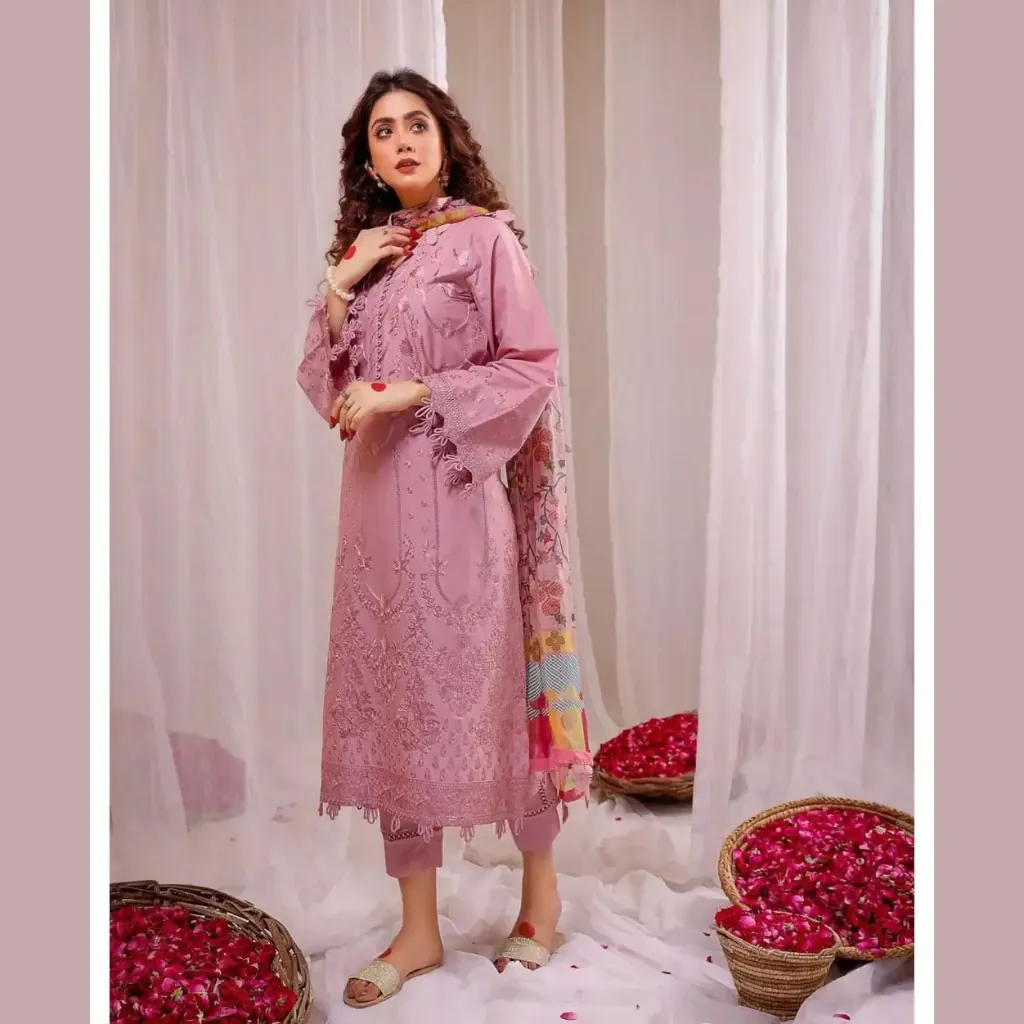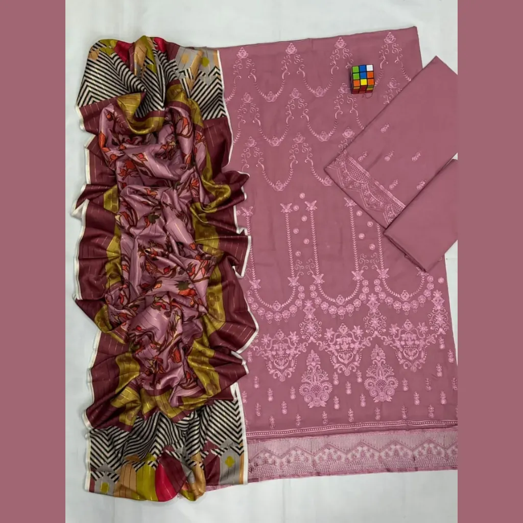 Perfect for casual wear, office wear, and semi-formal gatherings, this 3-piece unstitched suit is designed for women who want to look stylish without compromising on comfort. Pair it with your favorite accessories and footwear for a graceful winter look.