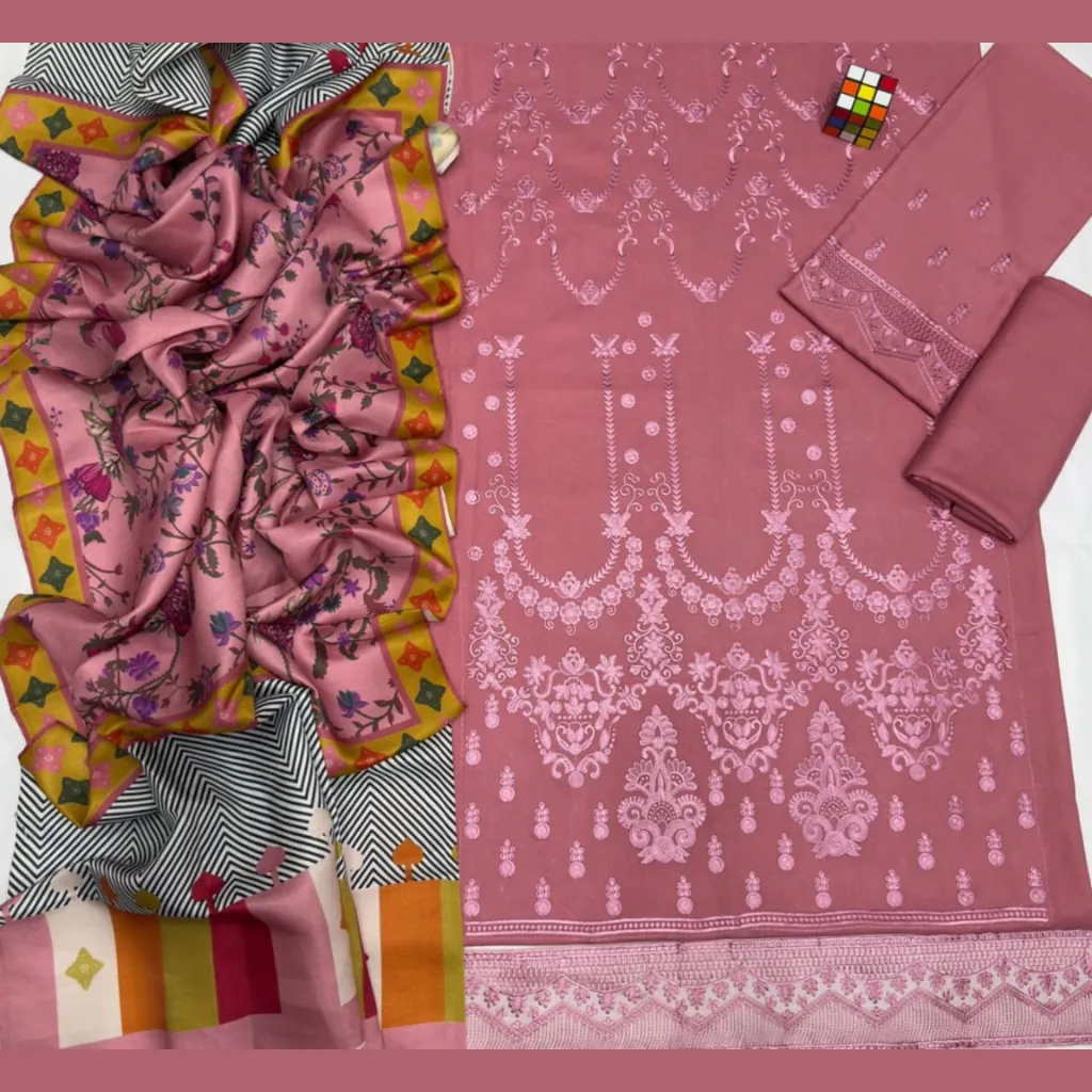 Step into winter elegance with the LIMELIGHT Dhanak Embroidered Unstitched 3PC Suit. Featuring an embroidered dhanak front, embroidered sleeves, and embroidered daman with a plain dhanak back and trouser, paired with a wool printed shawl. Designed for comfort and style, this outfit is perfect for festive gatherings, seasonal wear, and party occasions.