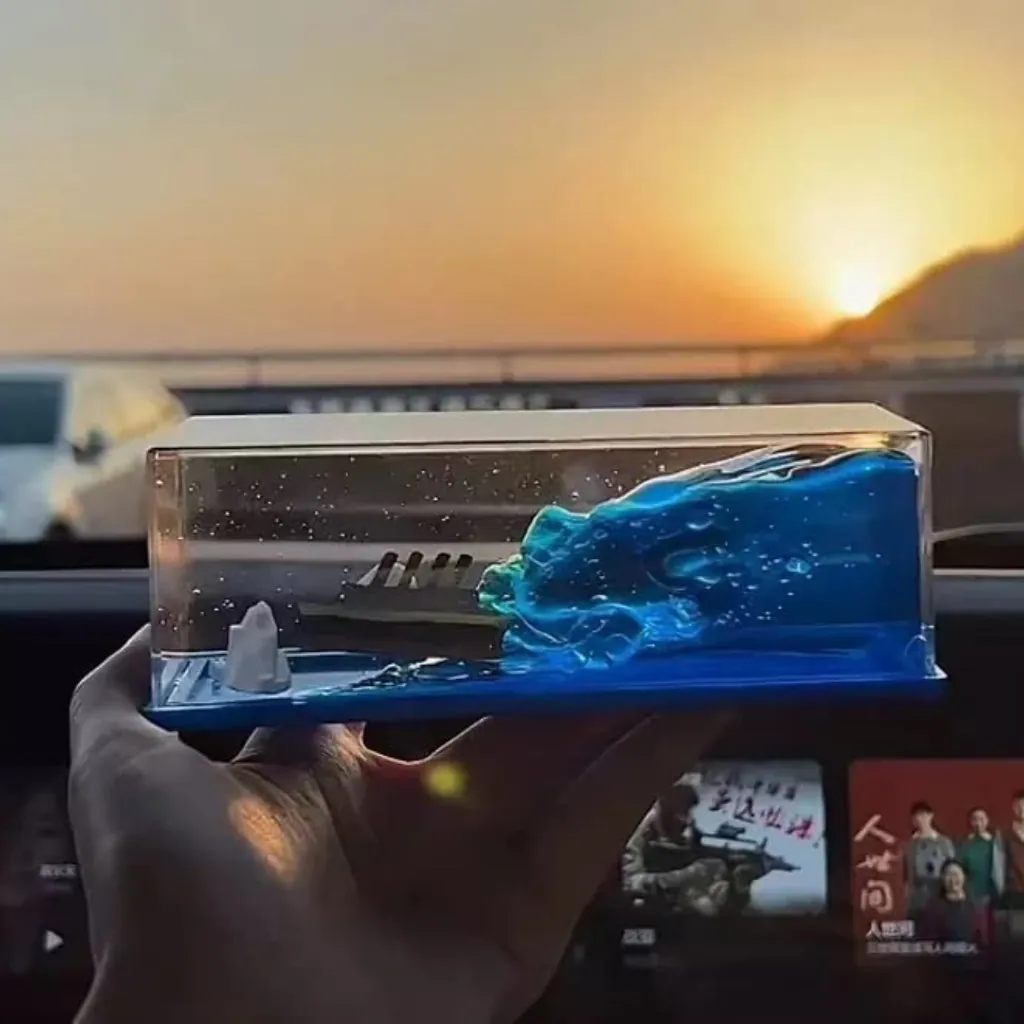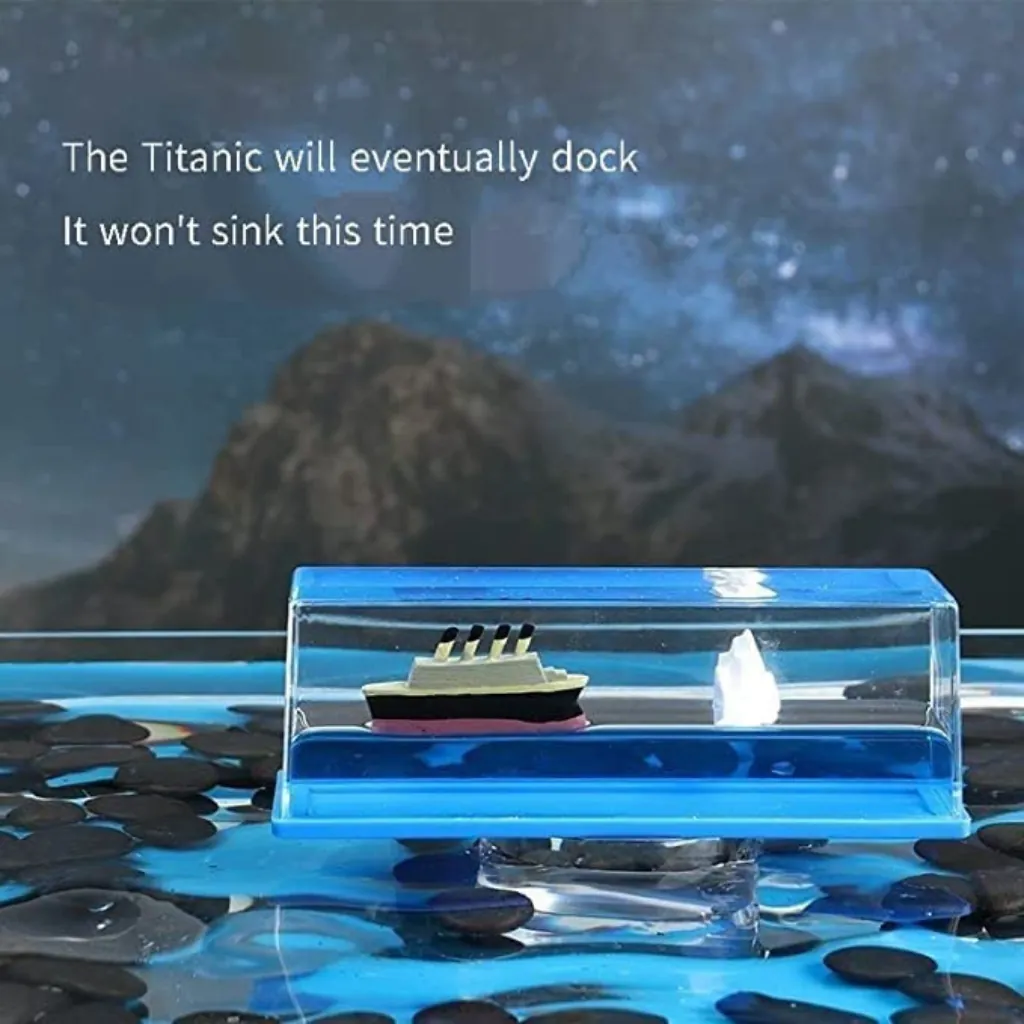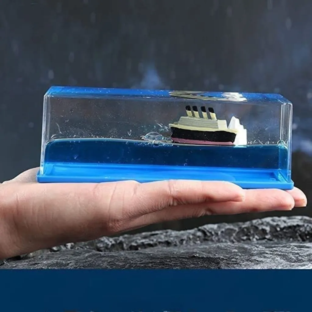 Bring the majestic ocean to your desk with this unique liquid motion wave ornament. Encased in a durable acrylic block, this captivating piece features a miniature model of the Titanic and an iceberg that gracefully move with the gentle tilt of the case. The liquid inside creates a calming, perpetual wave effect that is not only visually stunning but also serves as a relaxing anti-stress toy. It's a perfect conversation starter and a memorable gift for any ocean enthusiast or history buff.