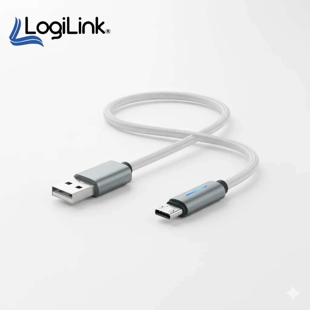 This LogiLink cable is engineered for everyday charging and data sync of Micro‑USB devices with added style and durability. Featuring a sleek white nylon‑braided jacket, it resists tangles and wear while offering a longer service life. The integrated LED “light” indicator provides visual feedback during charging, helping you see at a glance when the device is connected and charging in low‑light conditions. The cable supports fast charging currents (higher than typical standard cables) and allows data transfer (depending on device) through Micro‑USB. At 1 m length, it’s ideal for use at your desk, bedside, in car or when travelling. With robust connector ends and a build tested for bending (12,000+ times claimed), it balances durability with elegance. A 1‑year warranty rounds off the offering, making it a reliable accessory for Micro‑USB‑equipped smartphones, tablets and power‑bank devices.