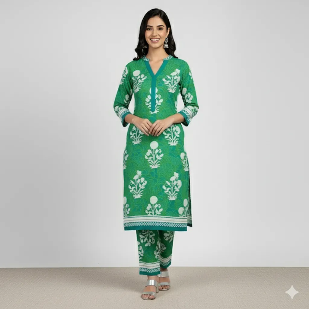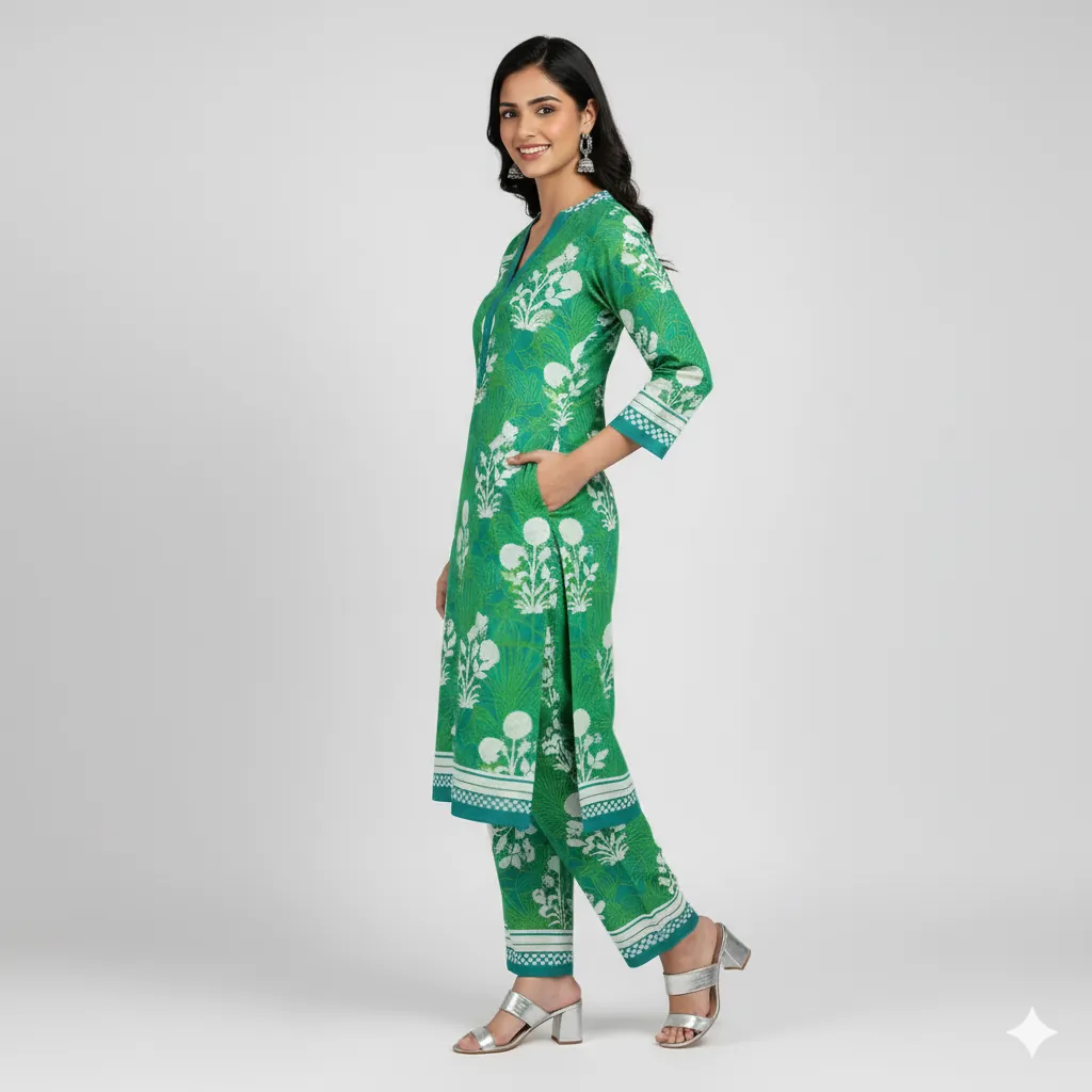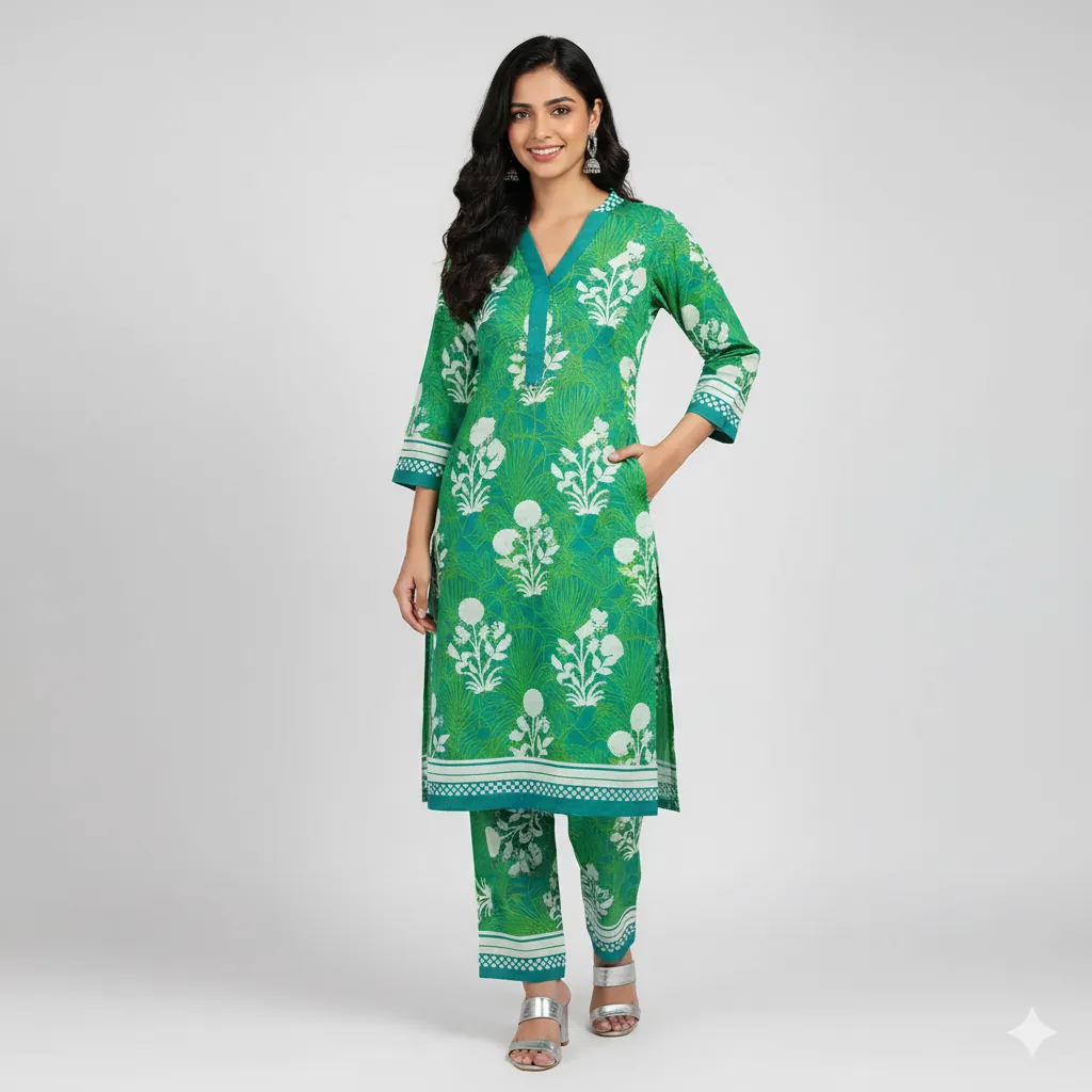 BIN SAEED Original 2-Piece Printed Lawn Suit - White & Green Print on Teal Base. Shop the original BIN SAEED 2-piece printed lawn collection. This suit features a stunning floral print in white and lime green on a vibrant teal base with a geometric border. The set includes a printed lawn shirt and a matching trouser. Experience the elegance and comfort of the BIN SAEED 2-Piece Printed Lawn Collection. This 100% original suit features a striking floral and leafy print in crisp white and a light lime-green, all set against a beautiful teal/sea green background. The border is a bold geometric pattern in white and teal. The set includes a beautifully designed printed lawn shirt and a matching printed lawn trouser. The fabric is a generous 5-meter cutting, providing ample material for a perfect fit. Ideal for daily wear, office, or casual outings, this summer collection offers both style and breathability.