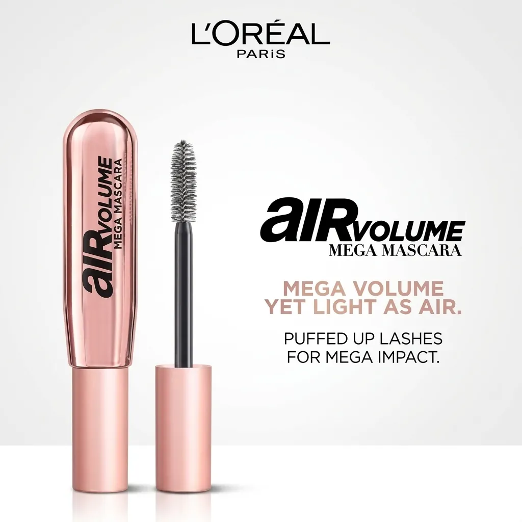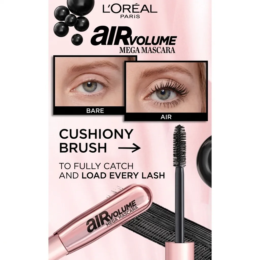 L'Oréal Paris Air Volume Mega Mascara - Lightweight Air-Whipped Formula for Intense Volume & Length - Smudge-Proof, Long-Lasting Washable Black Mascara - 9ml