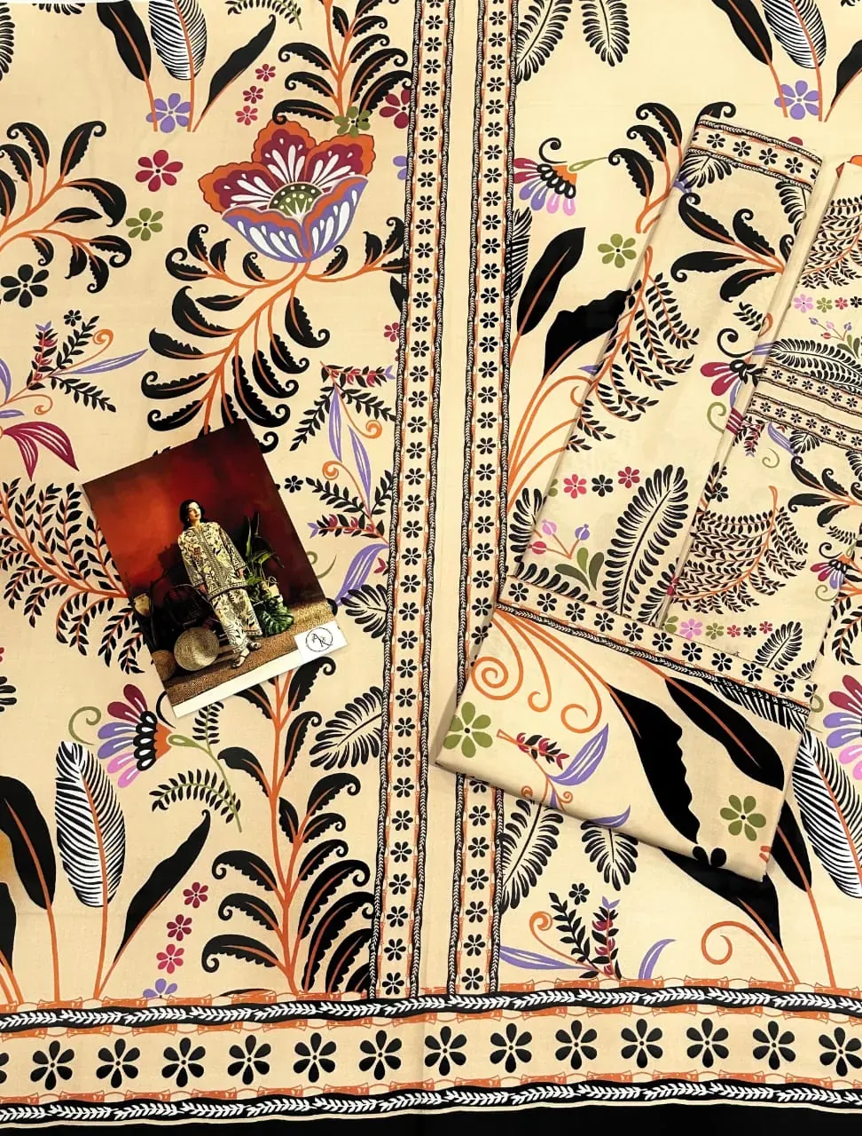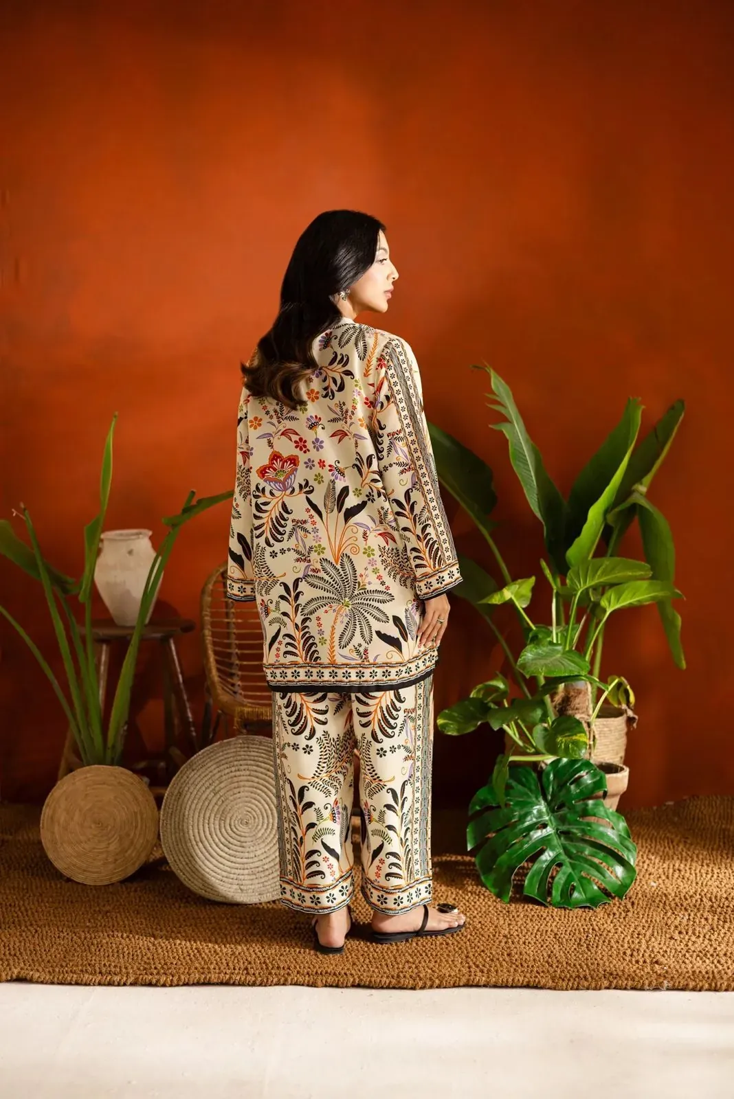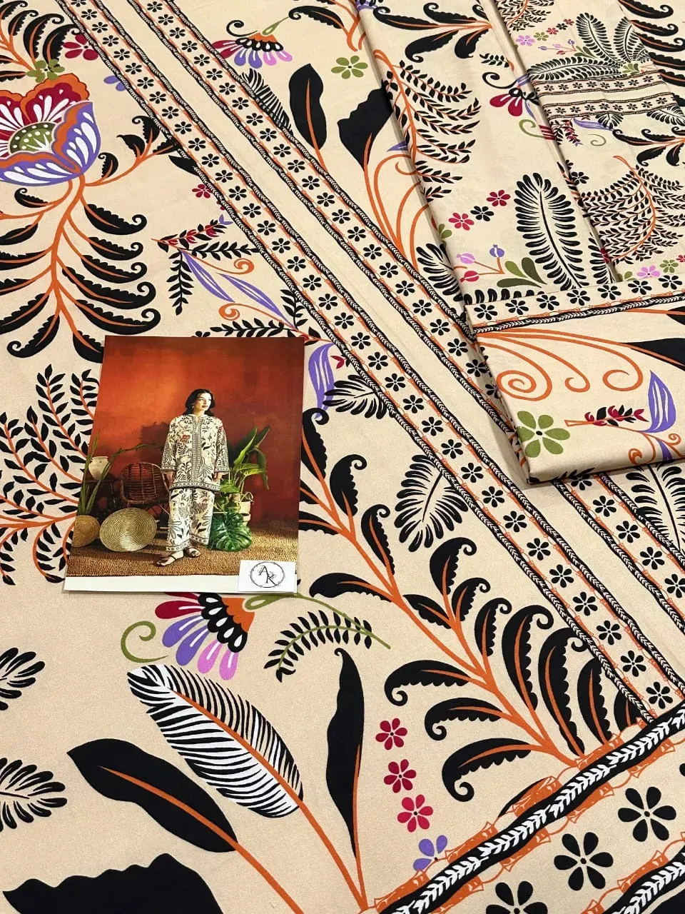 Elevate your style with the LULU SAR 2-Piece Printed Cord Set, a perfect blend of comfort and elegance. Crafted from high-quality linen, this unstitched fabric set is designed for a luxurious and soft feel. The design features a beautiful botanical print with a detailed central panel and a striking border, as seen in the accompanying image. The set includes a printed shirt and a printed trouser, giving you a complete look to customize to your perfect fit. With 5 meters of total fabric, you have ample material to create a unique outfit. The 100% quality guarantee ensures a premium product that is durable and fashionable.