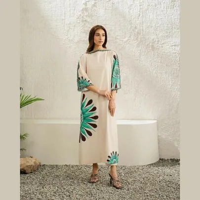 The Lulusar Digital Printed 2PC Silk Suit with Floral Accent is a masterpiece of sophisticated design and craftsmanship. Made from premium silk, this 2-piece set includes a flowing kameez adorned with a bold teal and beige floral pattern, paired with a matching trouser for a harmonious look. The lightweight silk fabric ensures breathability and comfort, making it suitable for long wear during festive events or formal gatherings. The digital printing technology delivers vibrant, fade-resistant colors, while the intricate floral accents add a touch of elegance to the traditional silhouette. Perfect for those seeking a standout piece, this suit is ideal for special occasions.