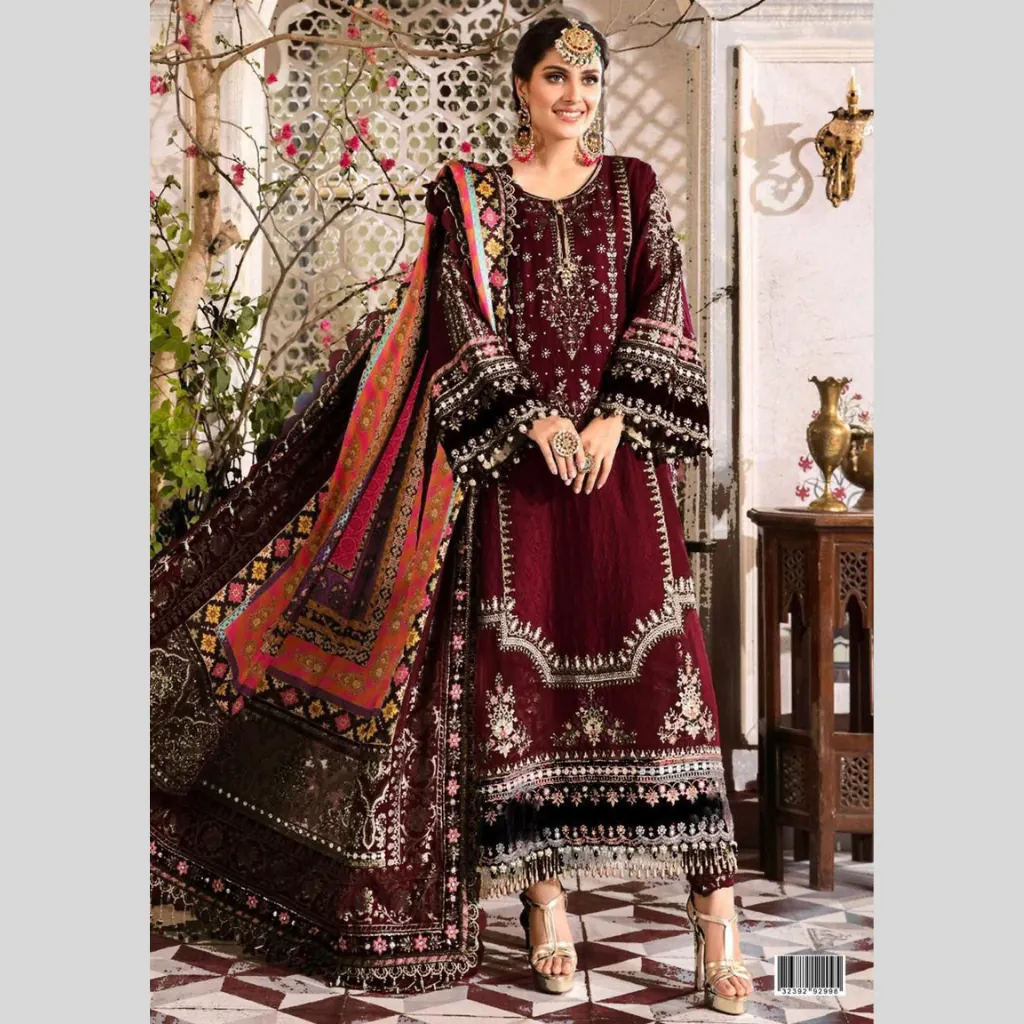 Ideal for weddings, festive celebrations, and evening parties, this Maria.B unstitched chiffon 3PC will make you stand out with its graceful charm and timeless elegance.