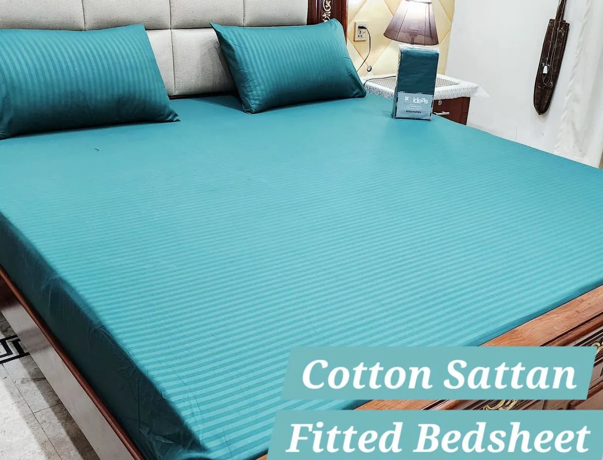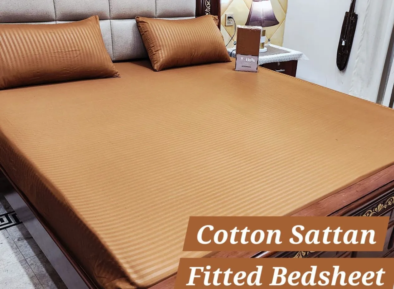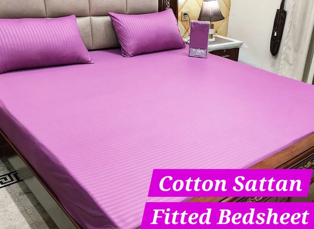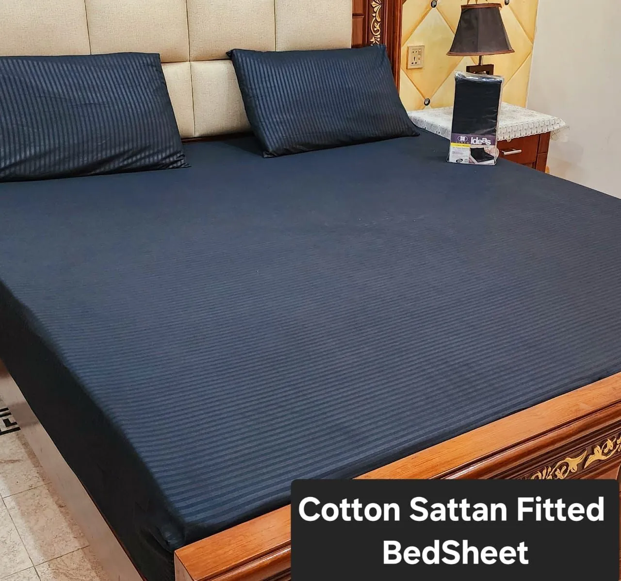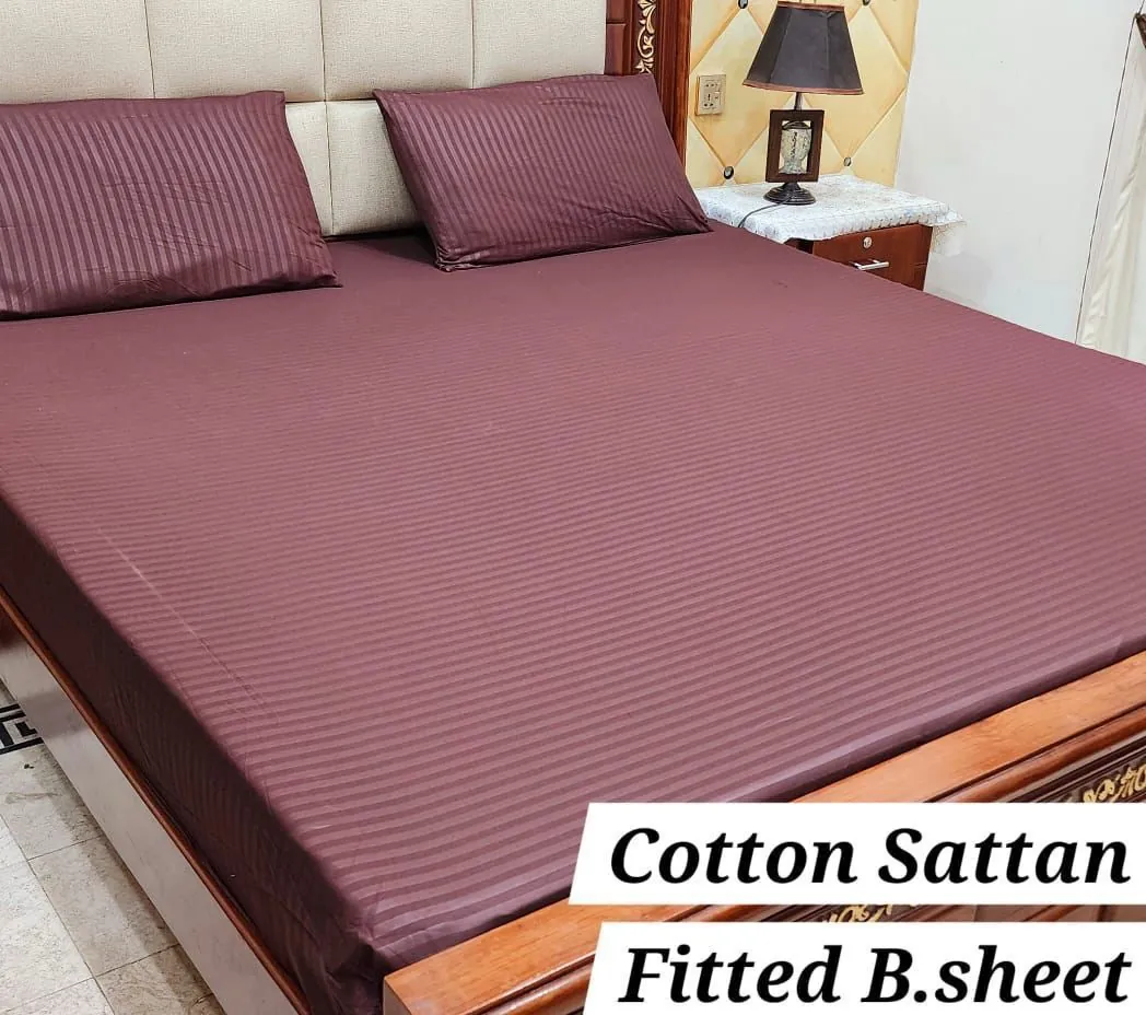 Luxury Cotton Sateen Fitted Bedsheet (King Size) | 1-Color Stripe | Non-Fading Guarantee. Export Quality Cotton Sateen Fitted Bedsheet (King Size). Guaranteed 100% fast colors after wash. Includes 1 Fitted Sheet and 2 Pillow Covers for a neat, luxurious bedroom look.
