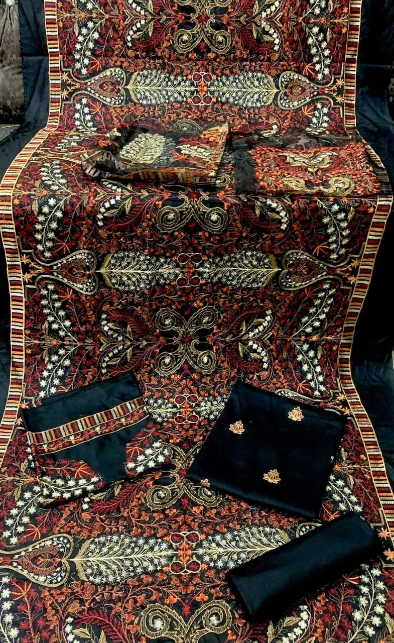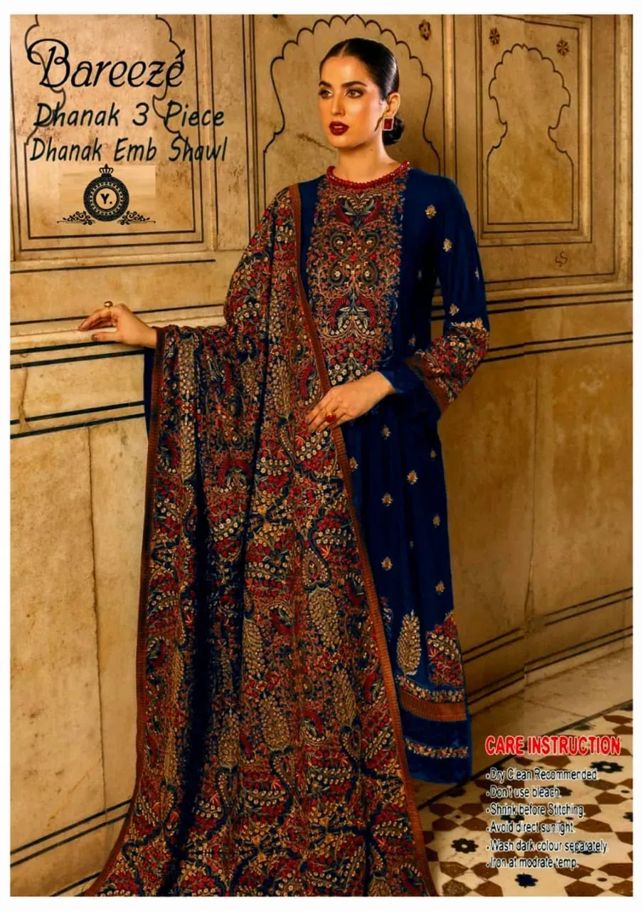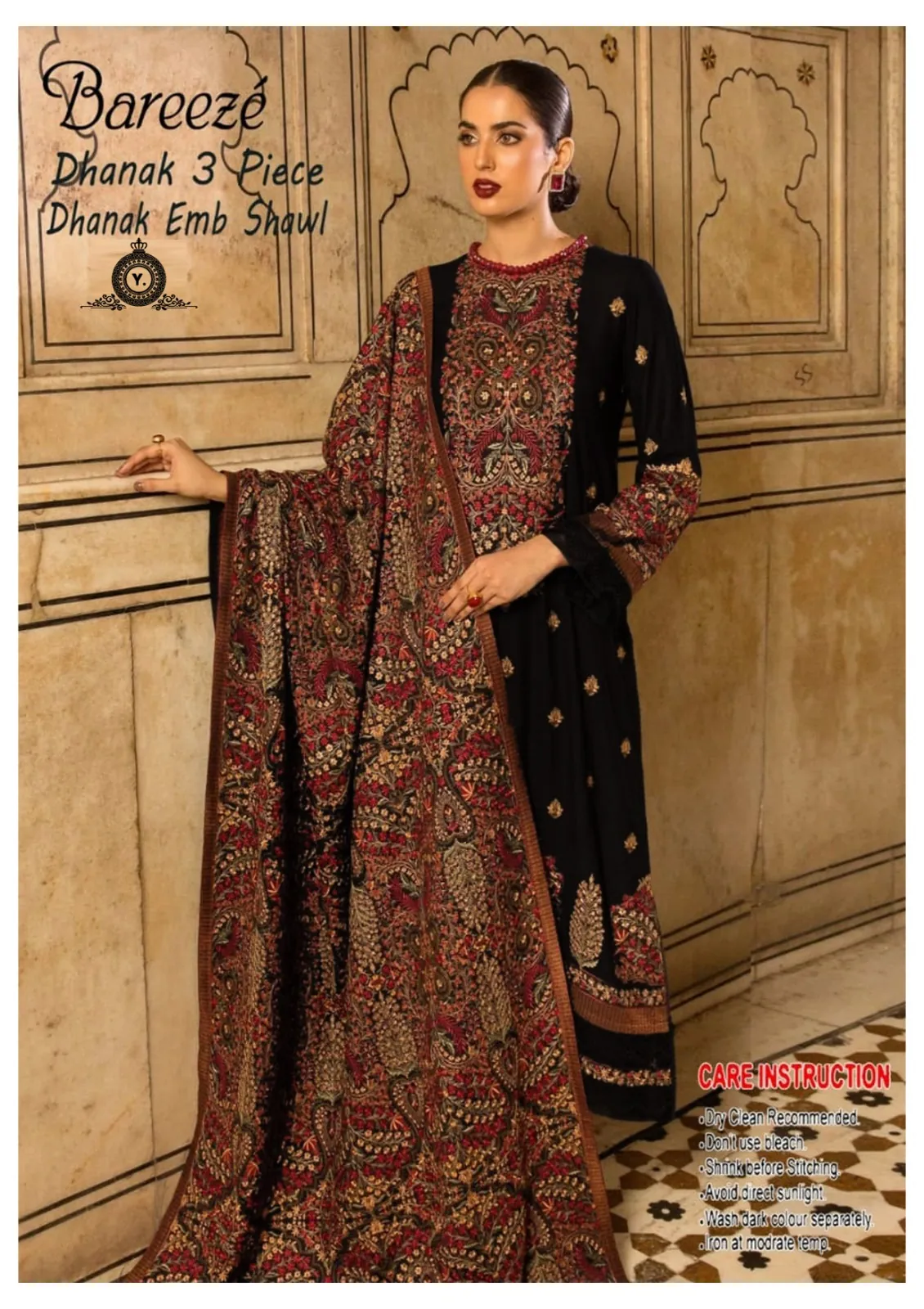Luxury Embroidered Dhanak 3-Piece Unstitched Suit with Heavy Shawl | Winter Formal Wear Collection | 2 Colors Available