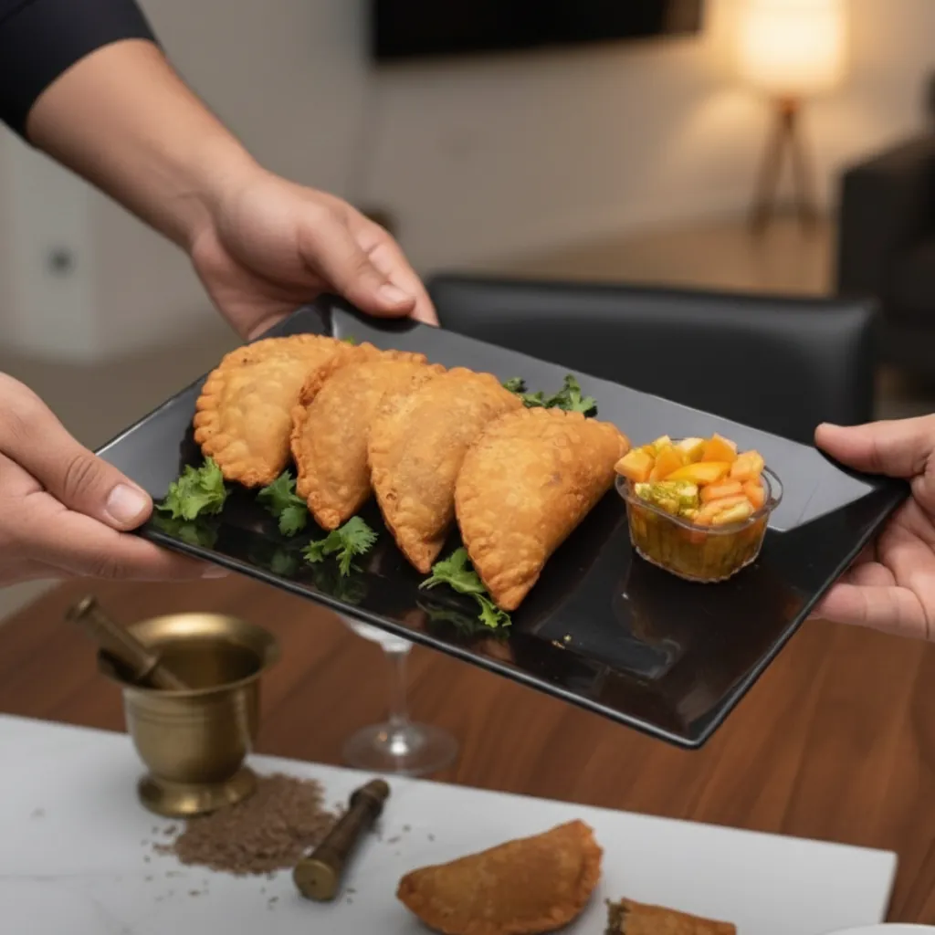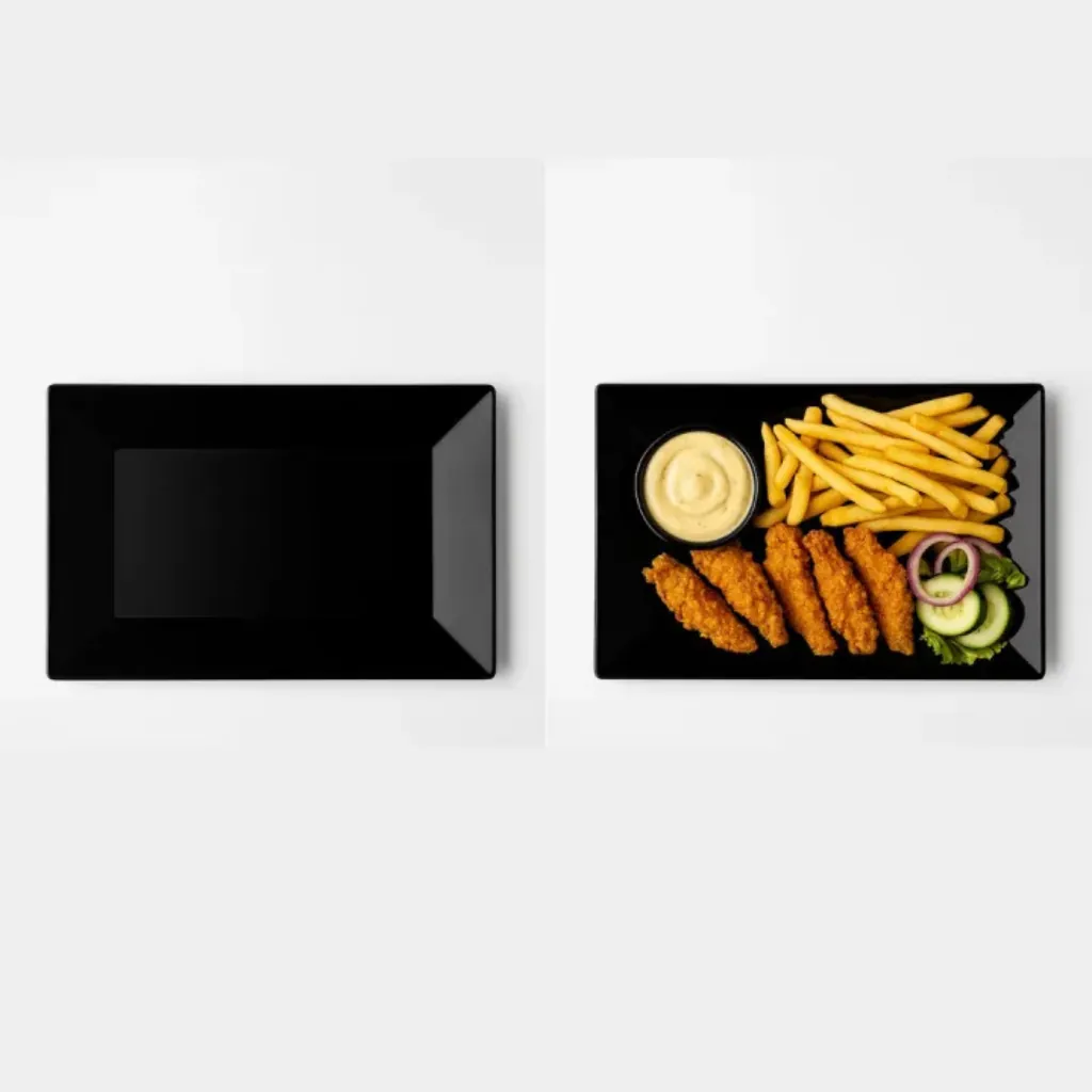 This Luxury Matte Black Ceramic Serving Platter is designed to bring elegance and modern style to your dining table. The sleek rectangular shape and premium matte black finish make it perfect for serving snacks, samosas, appetizers, kebabs, desserts, and other dishes in a professional and stylish way.