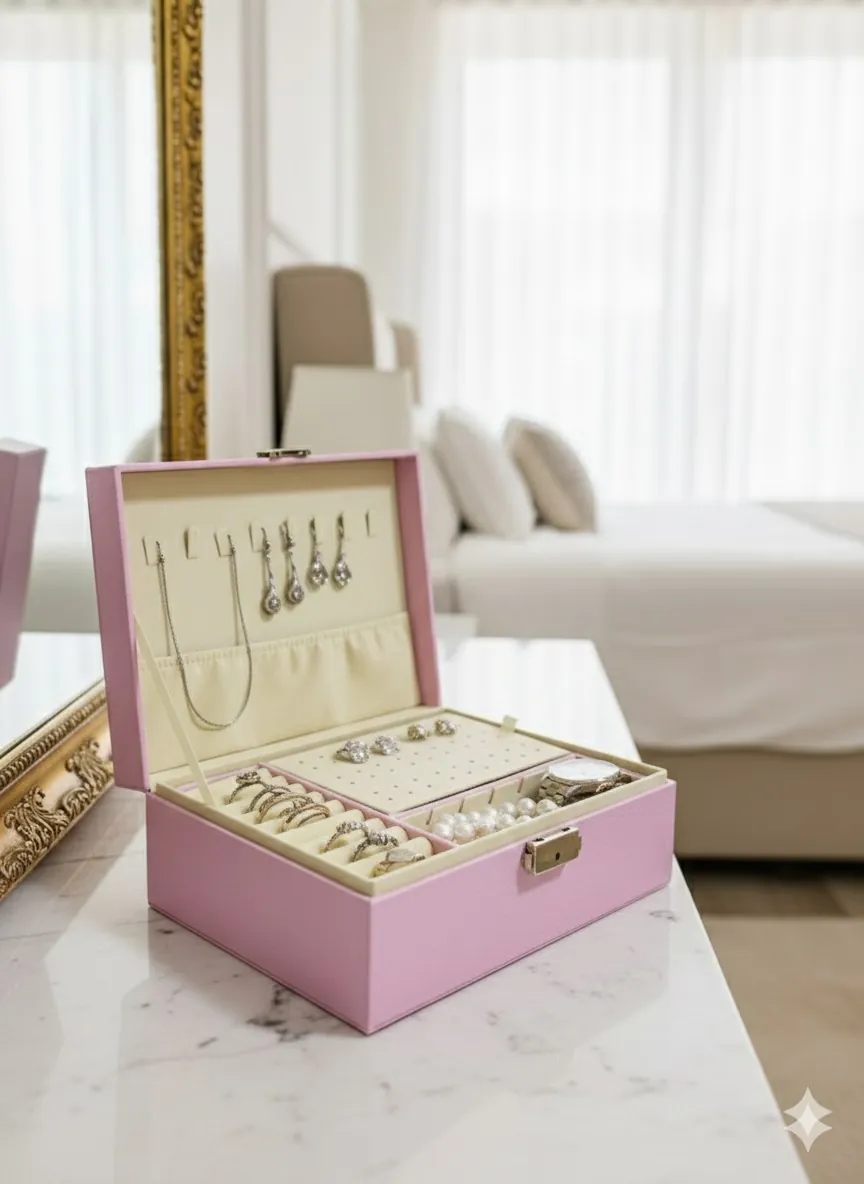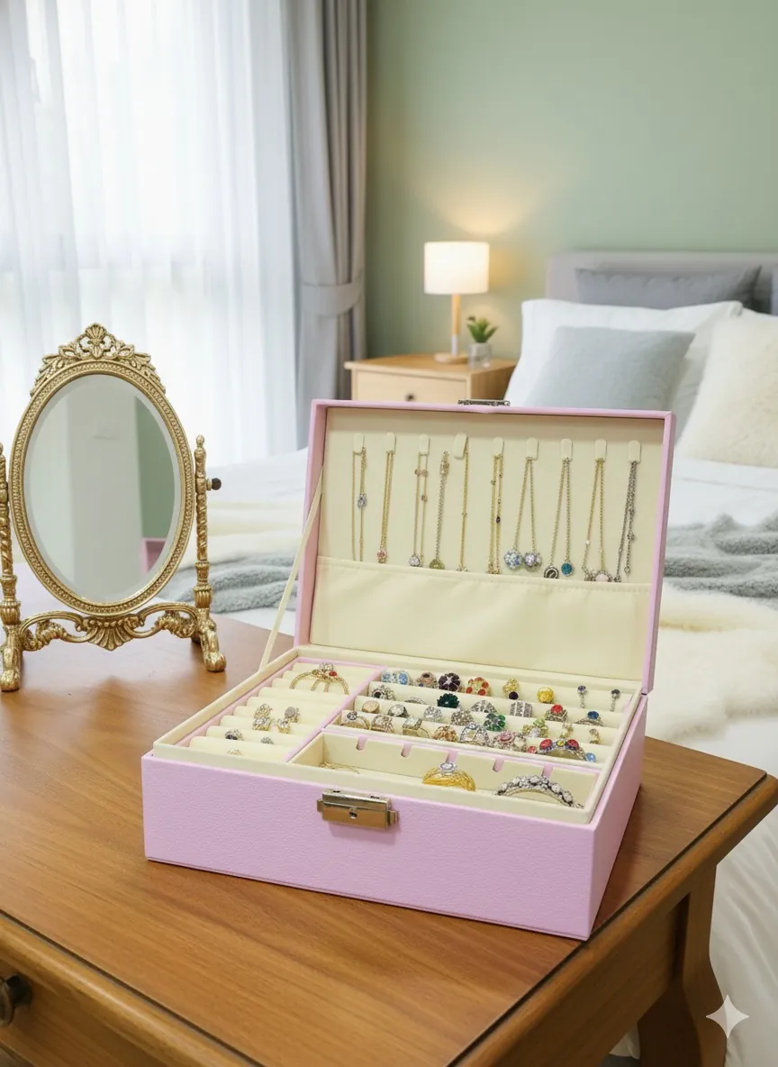 Luxury Pink 2-Layer Lockable Jewelry Box | PU Leather Organizer for Women