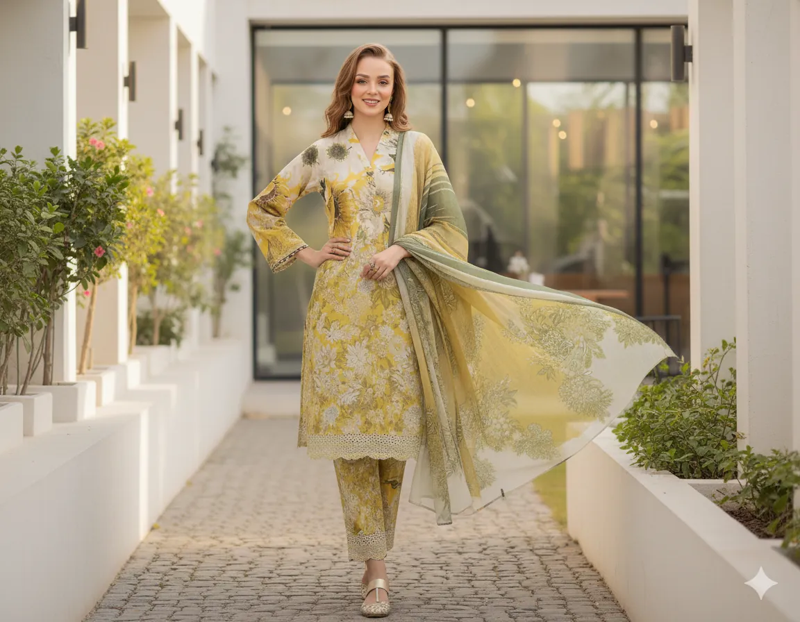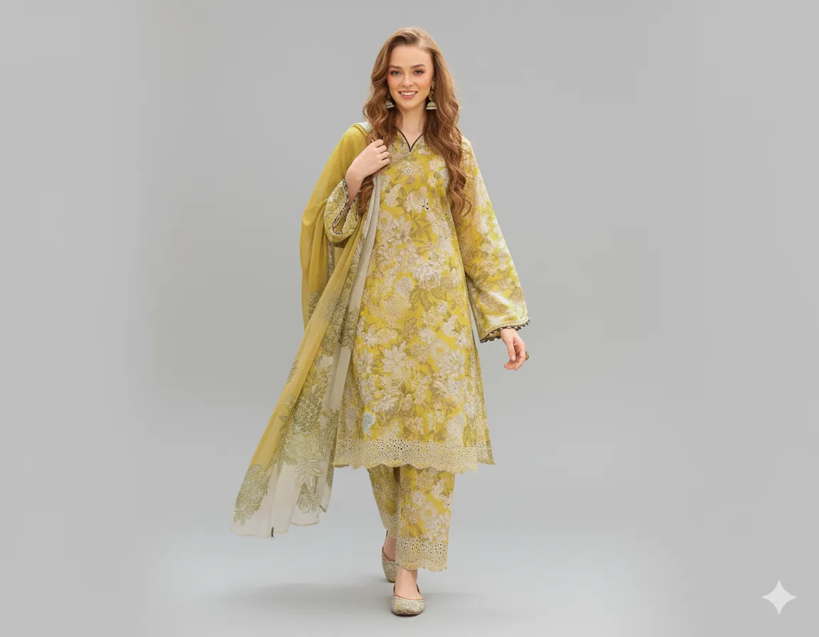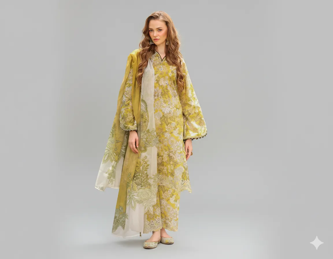Inspired by the intricate designs of top brands like Maria B, Iznik, Charizma, and Baroque, this suit features a stunning all-over digital print that brings a sophisticated touch to your wardrobe. The unstitched fabric includes a beautiful Printed Linen Shirt and a perfectly matching Printed Linen Trouser, allowing for a custom fit. The look is completed with a gorgeous Digital Printed Linen Dupatta, featuring a vibrant pattern that drapes beautifully.