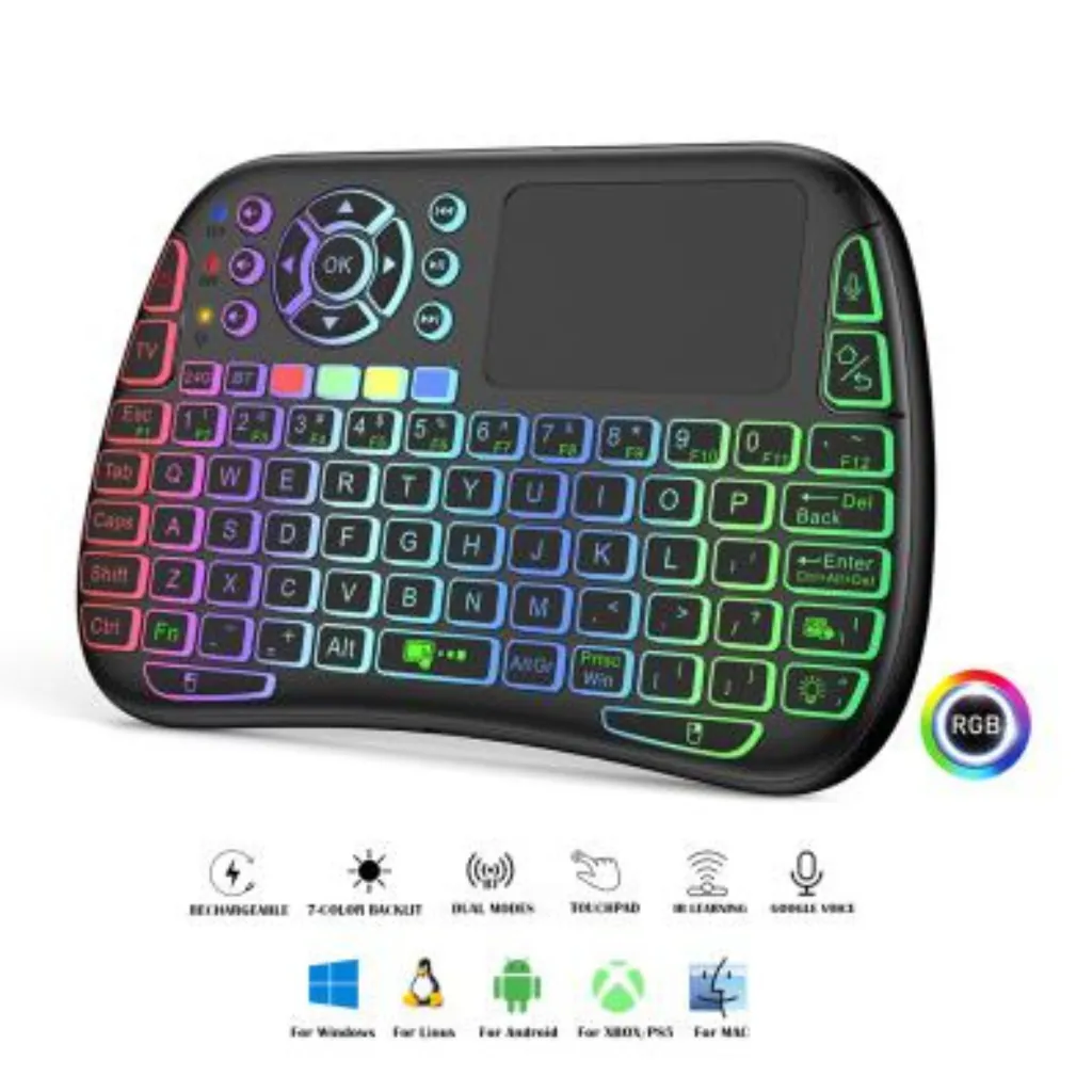 Its ergonomic mini keyboard layout ensures fast and comfortable typing, ideal for browsing the web, typing messages, or entering search queries. The seven-color LED backlit system adds a premium aesthetic touch and improves visibility in dark environments. You can switch between lighting colors or adjust brightness levels according to your mood or setting.