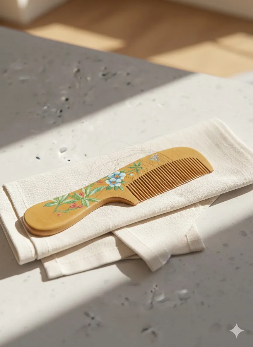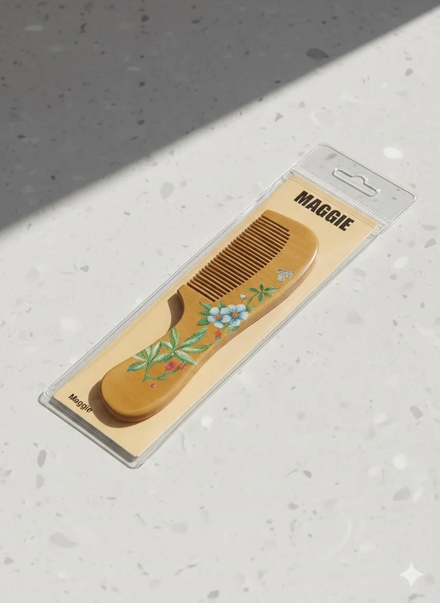 Upgrade your vanity with the MAGGIE Floral Printed Wooden Comb, where functionality meets artistic flair. This comb is crafted from high-quality natural wood, which naturally helps distribute your scalp’s oils from root to tip, promoting shine and health. Unlike plastic alternatives, the wooden construction prevents static buildup, keeping your hair smooth and frizz-free.