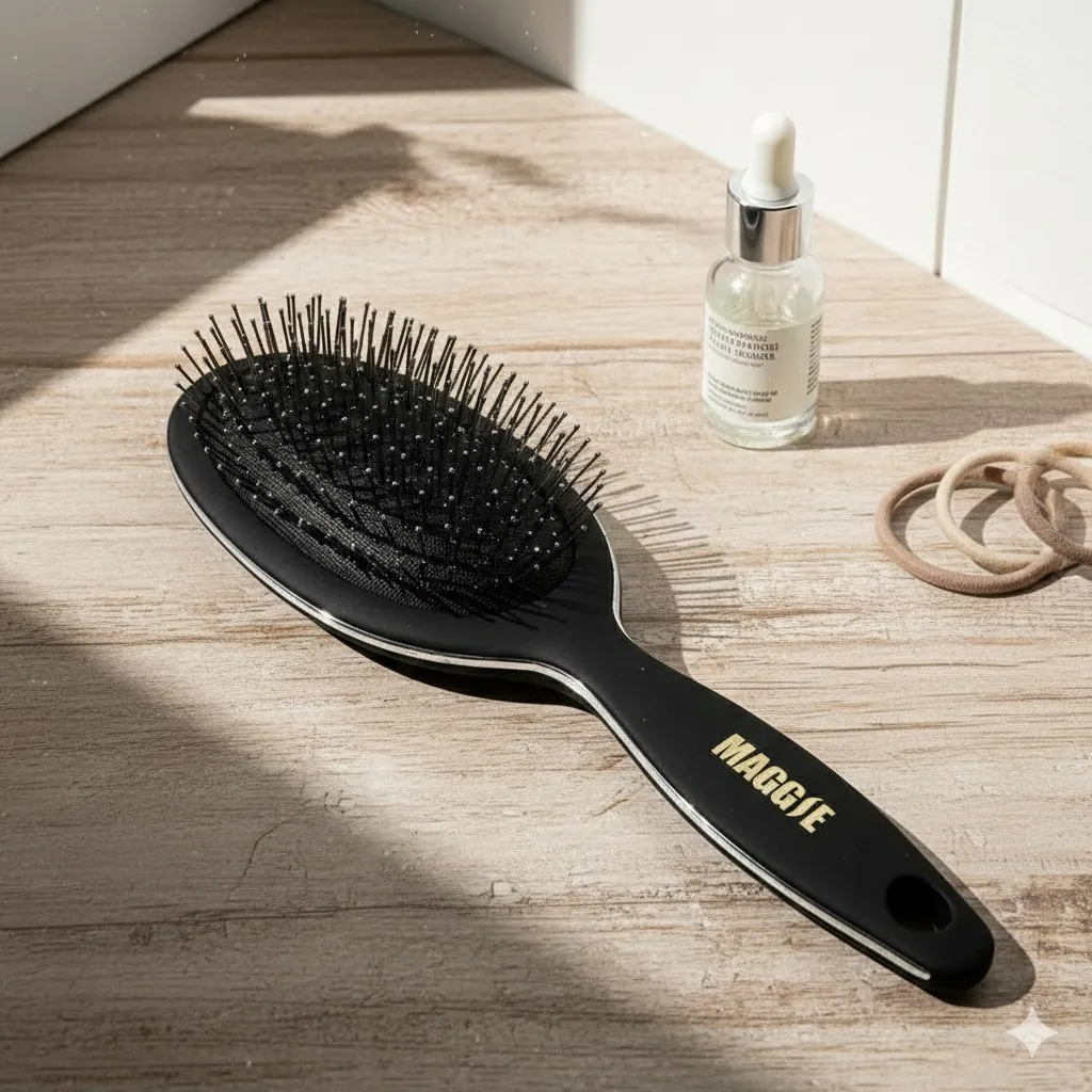 MAGGIE Professional Cushion Paddle Hairbrush – Ergonomic Detangling Brush with Ball-Tipped Bristles for Smooth, Frizz-Free Hair – Ideal for All Hair Types & Daily Styling