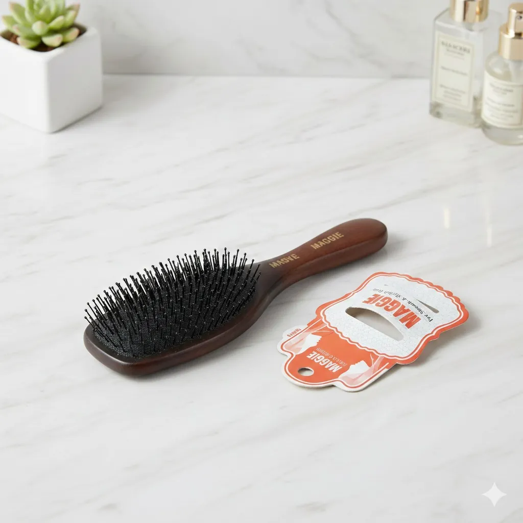 Elevate your daily hair care routine with the MAGGYE (Maggie) Professional Wooden Hair Brush. Designed for both durability and comfort, this brush features a high-quality wooden body that feels substantial yet balanced in your hand.