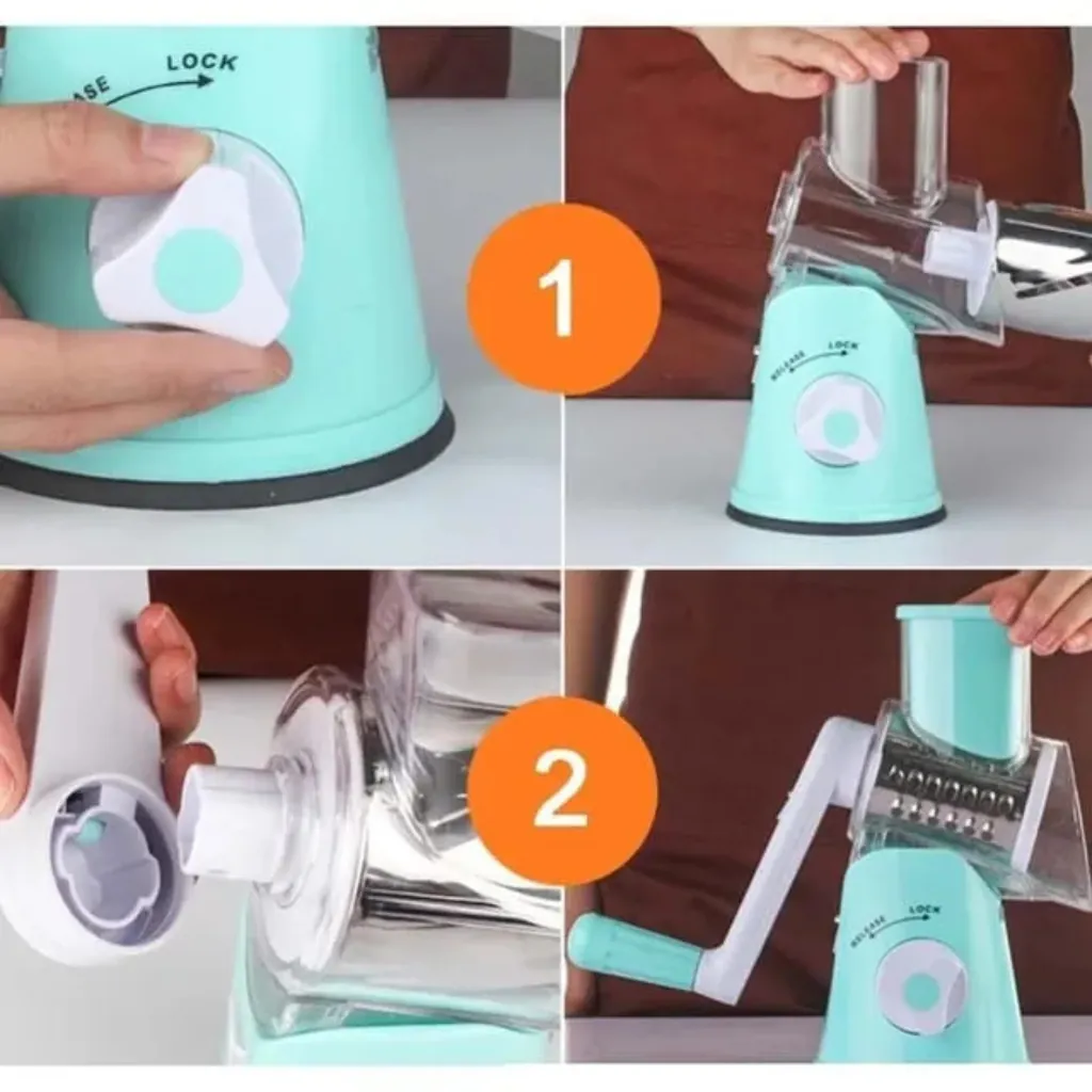 Streamline your kitchen prep with the Manual Vegetable Chopper, a versatile tool featuring interchangeable blades for slicing, grating, and chopping a variety of vegetables. This green and white device comes with multiple attachments, including coarse and fine graters, allowing you to create uniform cuts of carrots, cucumbers, cabbage, and more with ease. The hand-crank mechanism reduces effort, while the sturdy base keeps it stable during use. Ideal for salads, stir-fries, or garnishes, this chopper is easy to assemble, clean, and store, making it a must-have for quick and healthy meal preparation.