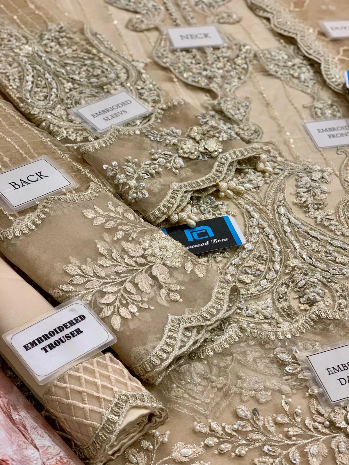 The back of the shirt is also heavily embroidered with a dedicated Embroidered Back Border. The Daman Border is beautifully finished with Handmade Tassels and 3D Sequins Handwork for an added touch of glamour.