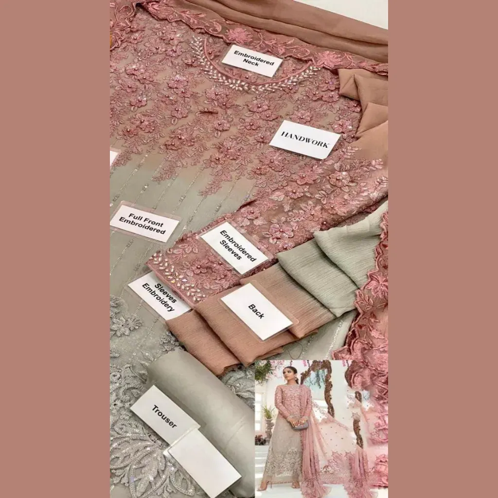 The Maria.B Chiffon Embroidered & 3D Luxury Unstitched 3PC suit is the epitome of grace and craftsmanship. Designed with premium chiffon fabric, this ensemble highlights tie & dye embroidery, 3D floral embellishments, and intricate moti work patches that reflect pure luxury.