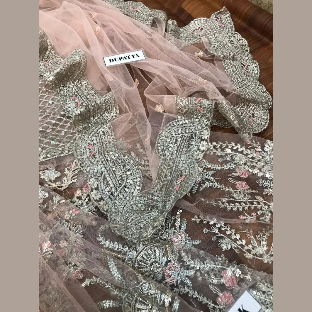 Experience pure elegance with the Maria.B Luxury Chiffon Collection, a masterpiece of craftsmanship and sophistication. This 3-piece unstitched suit features exquisite 3D floral embroidery and adda hand embellishment on premium chiffon fabric, designed to bring timeless luxury to your wardrobe.