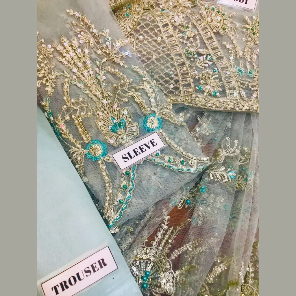 Experience pure elegance with the Maria.B Luxury Chiffon Collection, a masterpiece of craftsmanship and sophistication. This 3-piece unstitched suit features exquisite 3D floral embroidery and adda hand embellishment on premium chiffon fabric, designed to bring timeless luxury to your wardrobe.