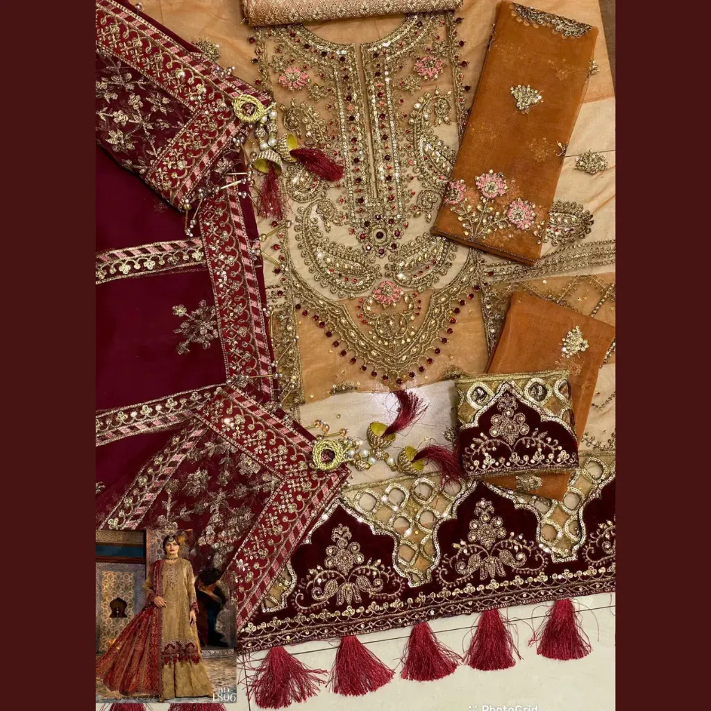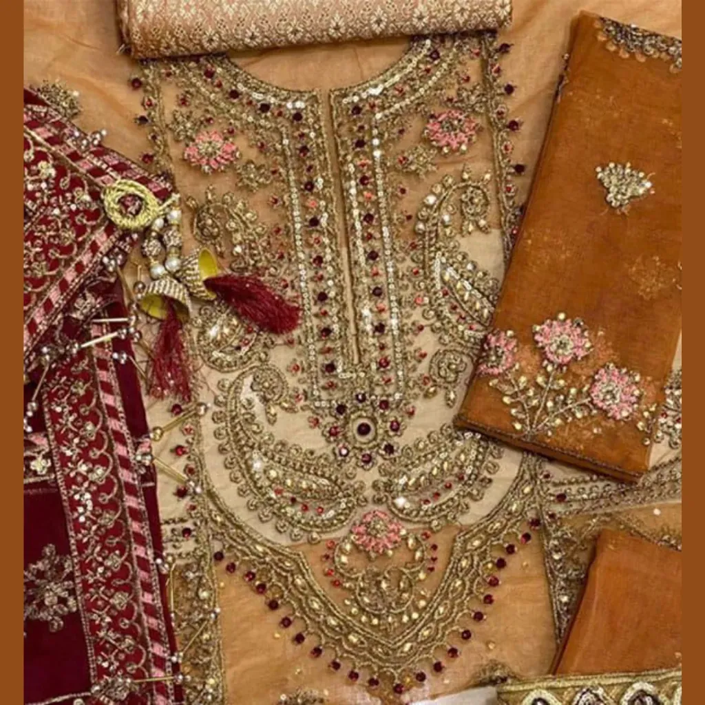 Dupatta: Includes a ready-to-wear chiffon embroidered dupatta with attached tassels, blending luxury with effor able style.