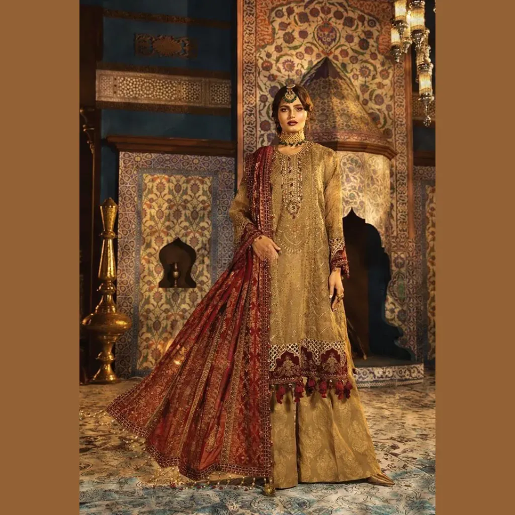 Elevate your festive and wedding wardrobe with the MARIA.B Net Embroidered Sequin Moti Work Luxury Unstitched 3 Piece Dress – a perfect fusion of timeless elegance and modern craftsmanship. This luxurious outfit is designed for women who want to stand out with grace, sophistication, and charm at every occasion.