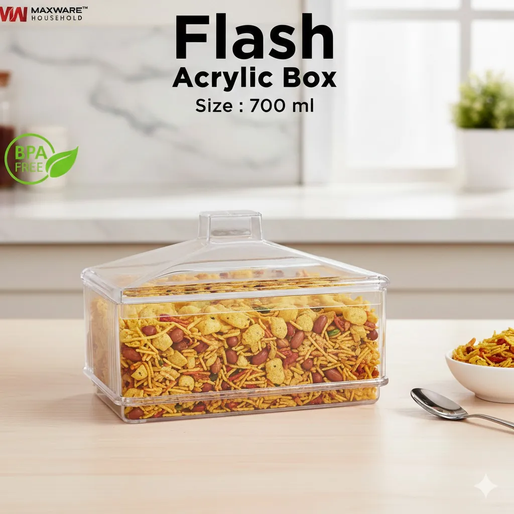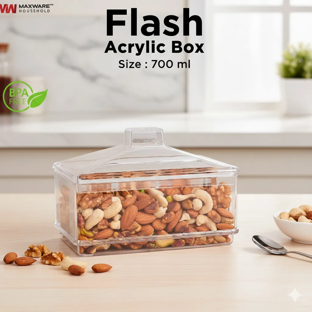Maxware Household Flash Acrylic Box 700ml – Premium BPA-Free Clear Plastic Food Storage Container with Lid for Dry Fruits, Sweets, and Kitchen Organization