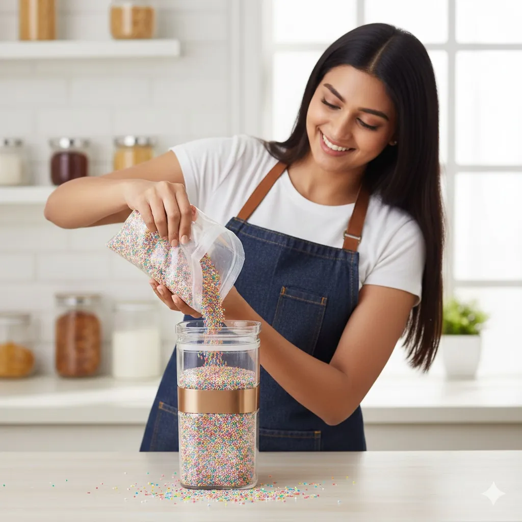 Elevate your pantry aesthetics with the Maxware Household Sparkle Acrylic Jar. Designed for those who appreciate both form and function, this 1200ml container offers a crystal-clear view of your contents, making it perfect for displaying colorful nuts, grains, pasta, or dried fruits.