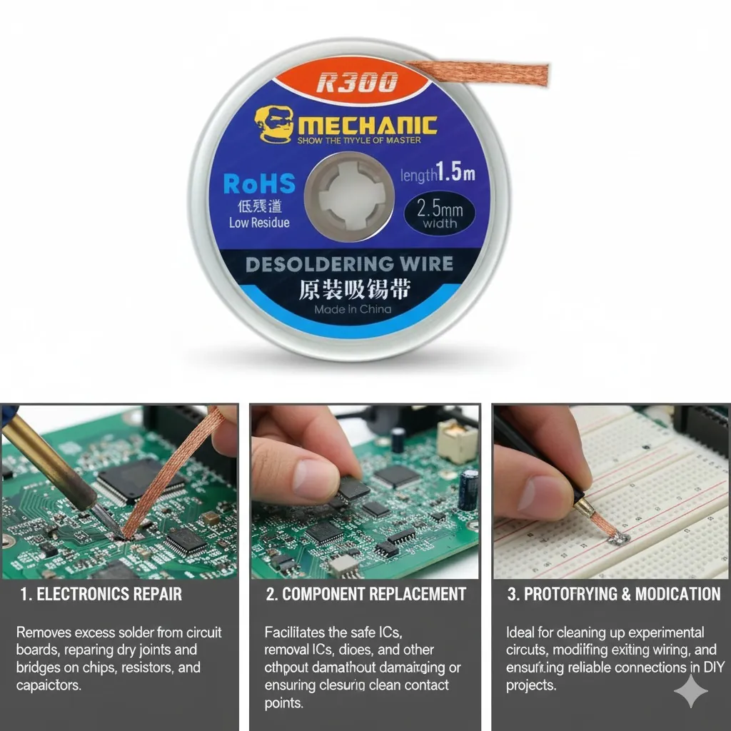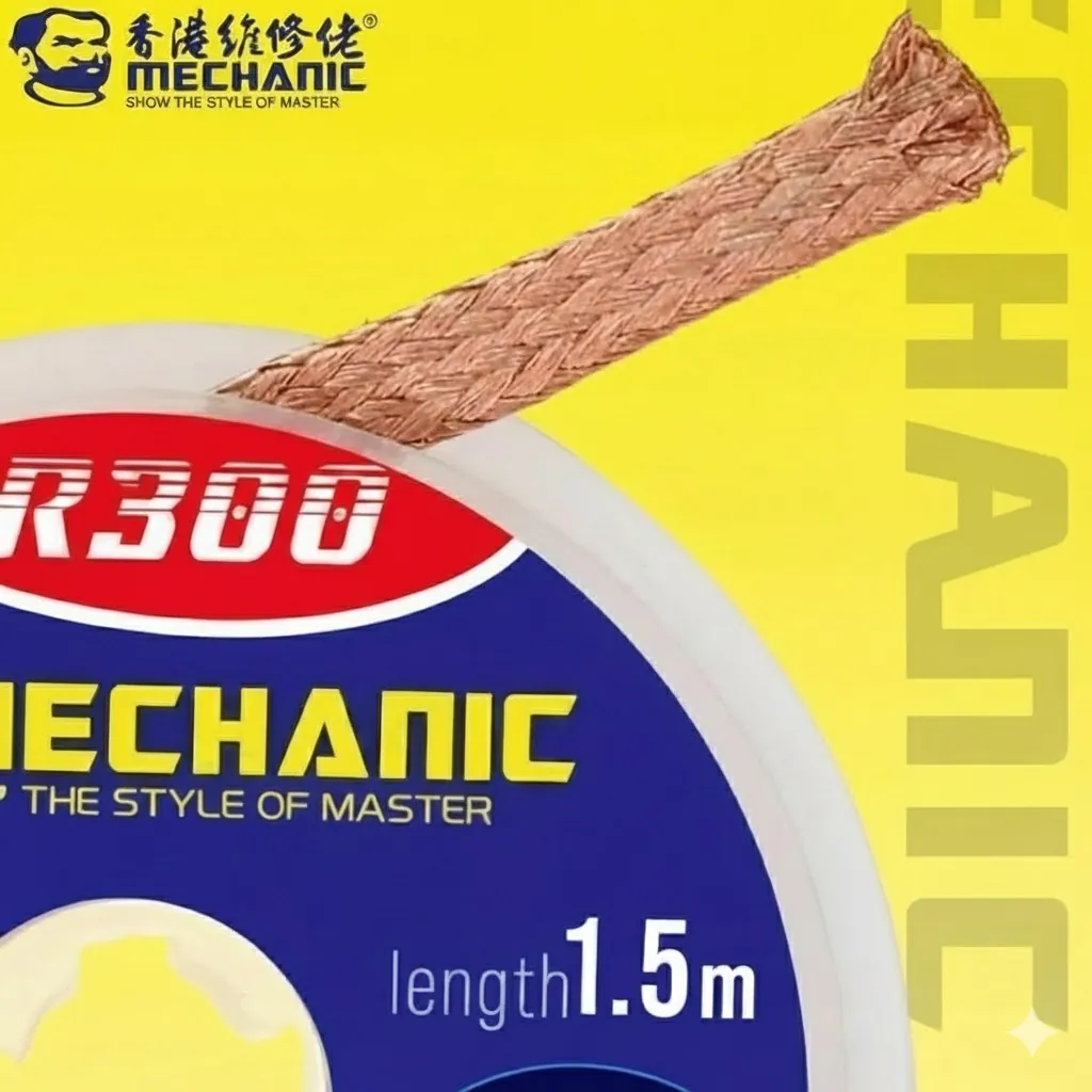 MECHANIC R300 (2.5MM x 1.5M) Desoldering Wick Braid | High-Purity Copper Solder Fluxed Remover Wire for BGA Welding & PCB Rework | Low-Residue Tin Absorption Tool