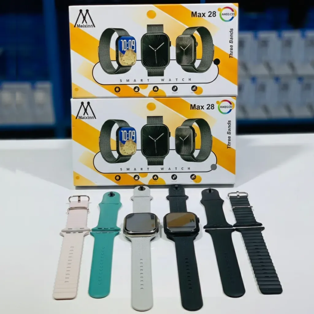 Discover the perfect blend of style, technology, and performance with the Max 28 Series 10 Smart Watch (3 in 1 Edition). This premium smartwatch is designed for users who want top-notch quality and advanced features in one elegant device. Built with a durable body, HD display, and comfortable straps, it ensures a sleek and modern look for everyday wear.
