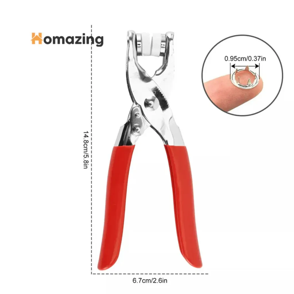 Upgrade your DIY toolkit with this Metal Snap Buttons Pliers Set, a complete solution for attaching snap fasteners on various fabrics. The sturdy pliers offer a strong grip and precise fastening, making it ideal for clothing repairs, leather projects, baby bibs, bags, jackets, and more. Whether you're a beginner or an expert crafter, this set is user-friendly and includes everything you need for clean, durable snaps every time.