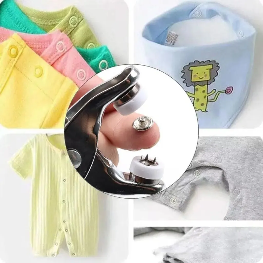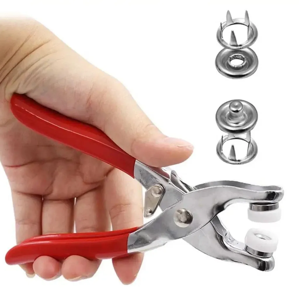 Upgrade your sewing kit with this Metal Tich Button Press Plier Set. Designed for quick and secure button attachment, it’s perfect for abayas, baby clothes, bags, and DIY crafts. The ergonomic pliers make pressing easy, and the included 50 metal buttons ensure long-lasting use. No machine required—just press and fix in seconds. Ideal for tailors, designers, and home crafters.