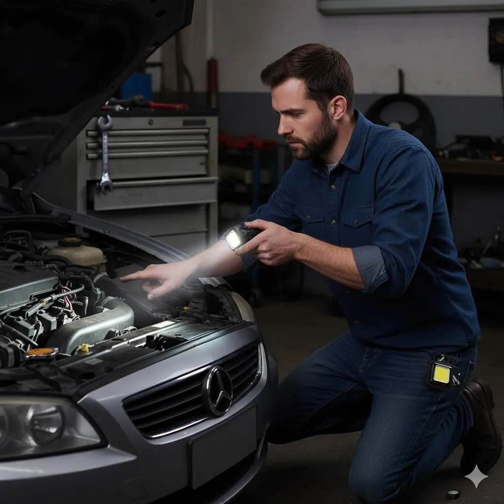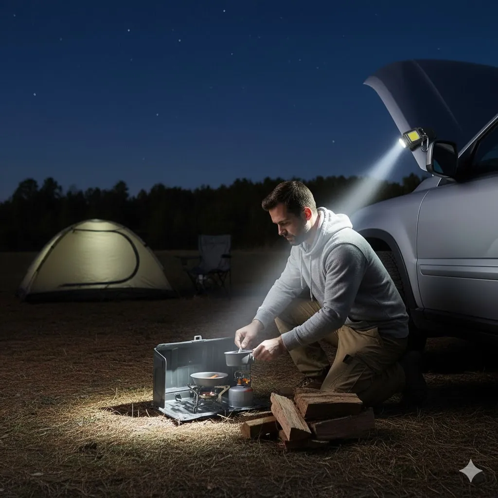 Designed for hands-free operation, it features a Built-In Strong Magnet to securely attach to metal surfaces and a Collapsible Bracket to stand the light at various angles. For portability, the rugged Carabiner easily clips onto keychains, backpacks, or belt loops. As a bonus, the robust design includes an integrated Bottle Opener, making it a perfect companion for outdoor adventures and social gatherings.