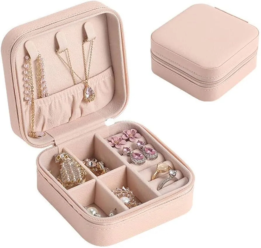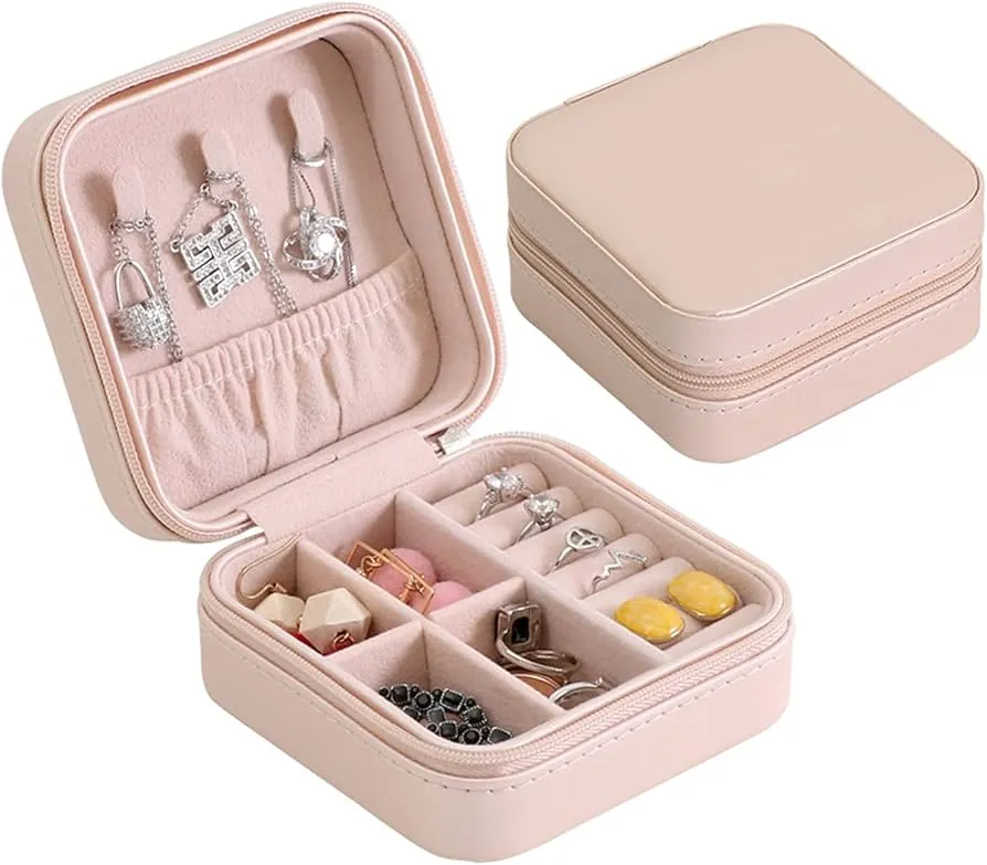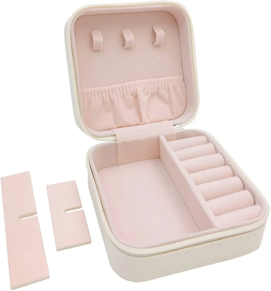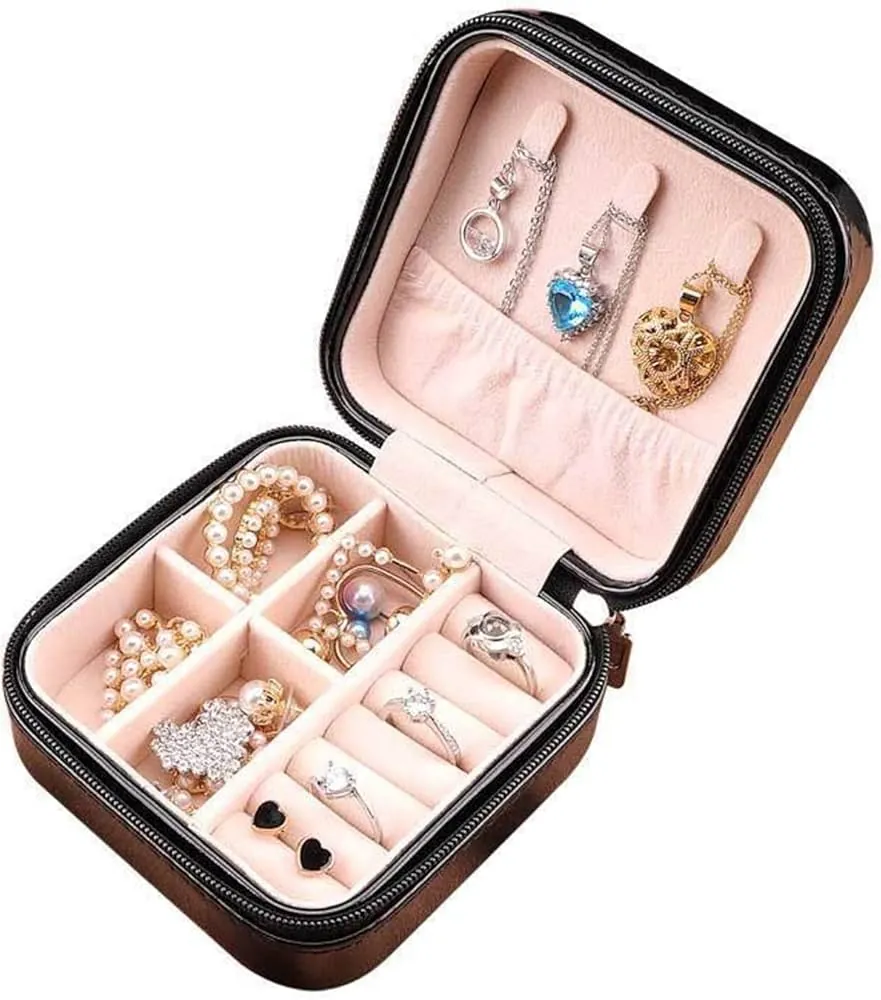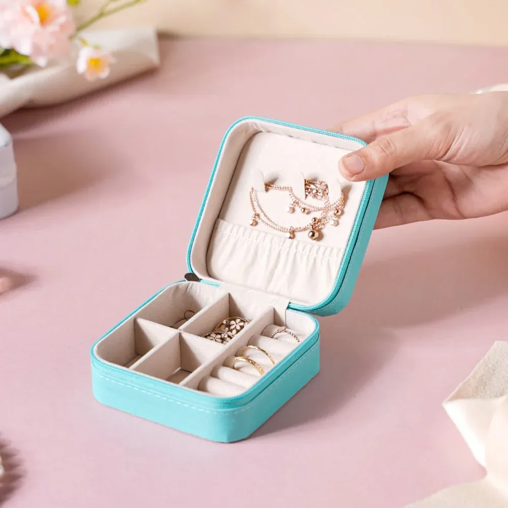 Inside, you’ll find dedicated compartments for rings, earrings, necklaces, and bracelets — keeping everything neatly organized and easy to access. The soft velvet interior lining ensures gentle protection for delicate pieces, while the secure zipper closure keeps everything safe on the go.