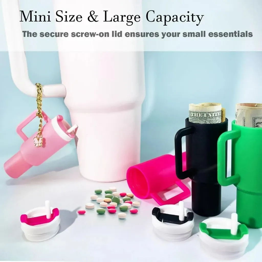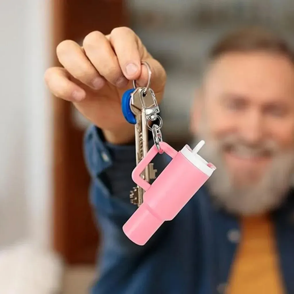 Add a touch of style and functionality with the Mini Stanley Style Tumbler Keychain, a compact accessory featuring a built-in storage compartment. Available in vibrant colors like red, pink, blue, black, green, purple, and white, this keychain mimics the iconic tumbler design while offering a small space to store tiny items like earbuds, coins, or pills. The sturdy metal keyring ensures secure attachment to keys, bags, or belts, making it ideal for daily use or travel. Lightweight and durable, this trendy keychain combines practicality with a fashionable look for all ages.