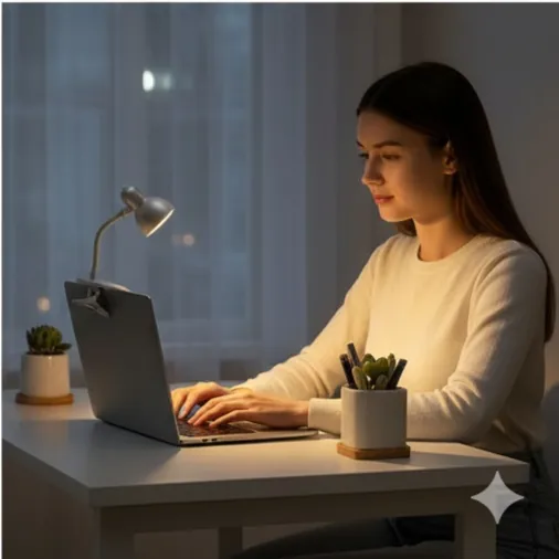 Powered by USB or built-in rechargeable battery, this lamp is perfect for students, professionals, and travelers alike.
