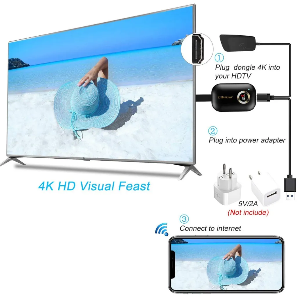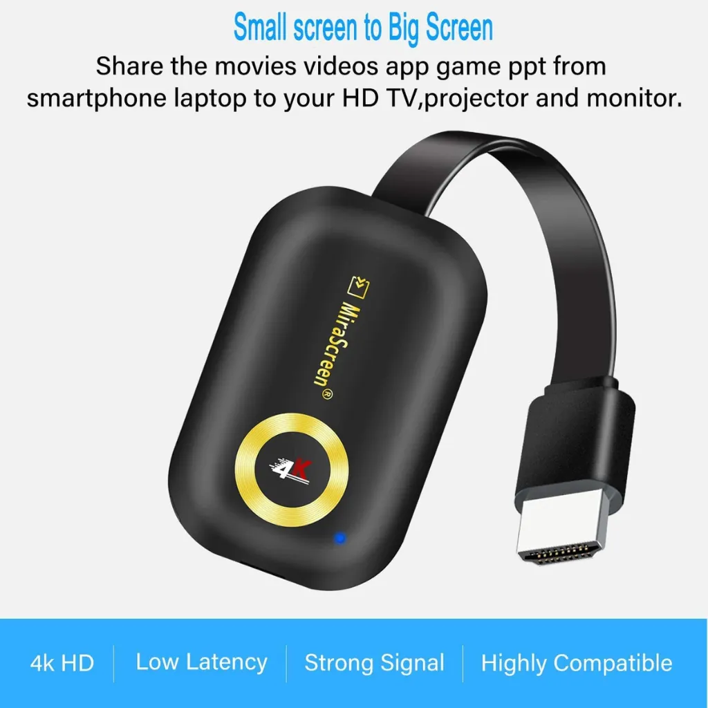 Experience ultra-smooth screen mirroring and streaming with the MiraScreen G9 Plus Wireless HDMI WiFi Display Dongle, designed for a seamless multimedia experience across all your smart devices. Whether you’re watching movies, giving a business presentation, or sharing vacation photos, this compact yet powerful dongle mirrors your smartphone, tablet, or laptop screen directly to any HDTV or projector in stunning Full HD 1080P or 4K quality.