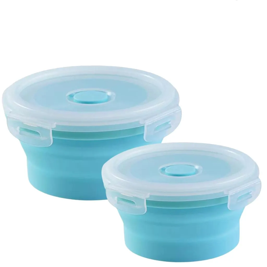 Mixcover ROUND Foldable Silicone Bento Box Lunch Box Set - Space-Saving & Leak-Proof Pack of 2