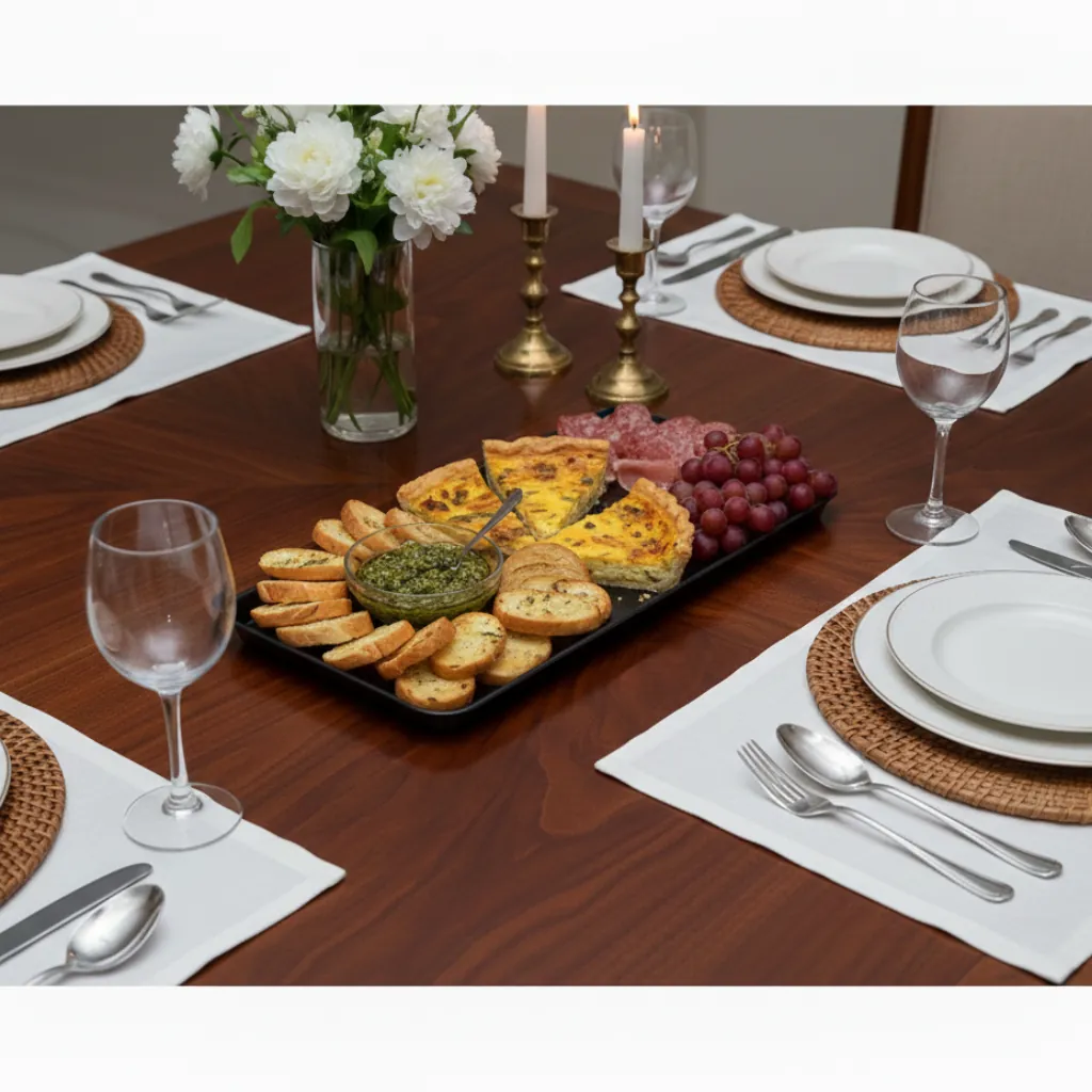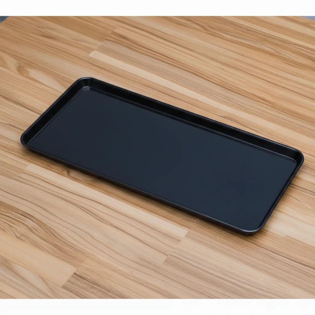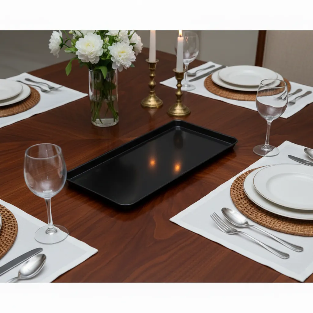 This Modern Matte Black Melamine Food Tray is designed for stylish and practical serving. Its elegant minimalist design and premium matte black finish give a luxury look to your dining table and kitchen. The tray is made from high-quality melamine material, which is shatterproof, lightweight, and durable for everyday use.