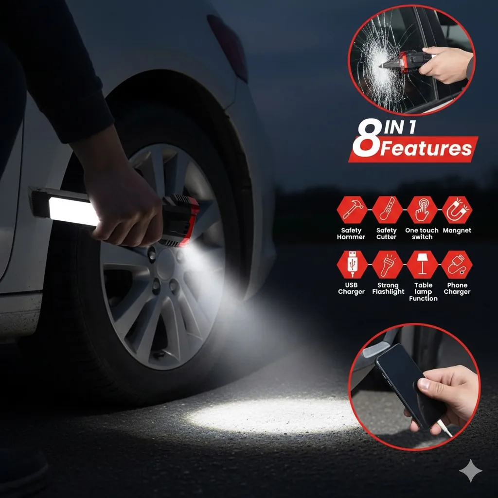 Be prepared for any emergency with the 5-in-1 Multi-Function Emergency Car Safety Tool. This compact yet powerful device is an indispensable item for every vehicle, combining multiple life-saving and utility features in one rugged unit.