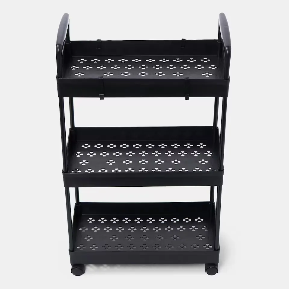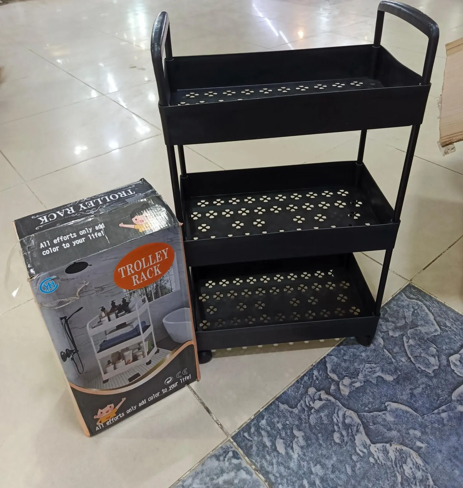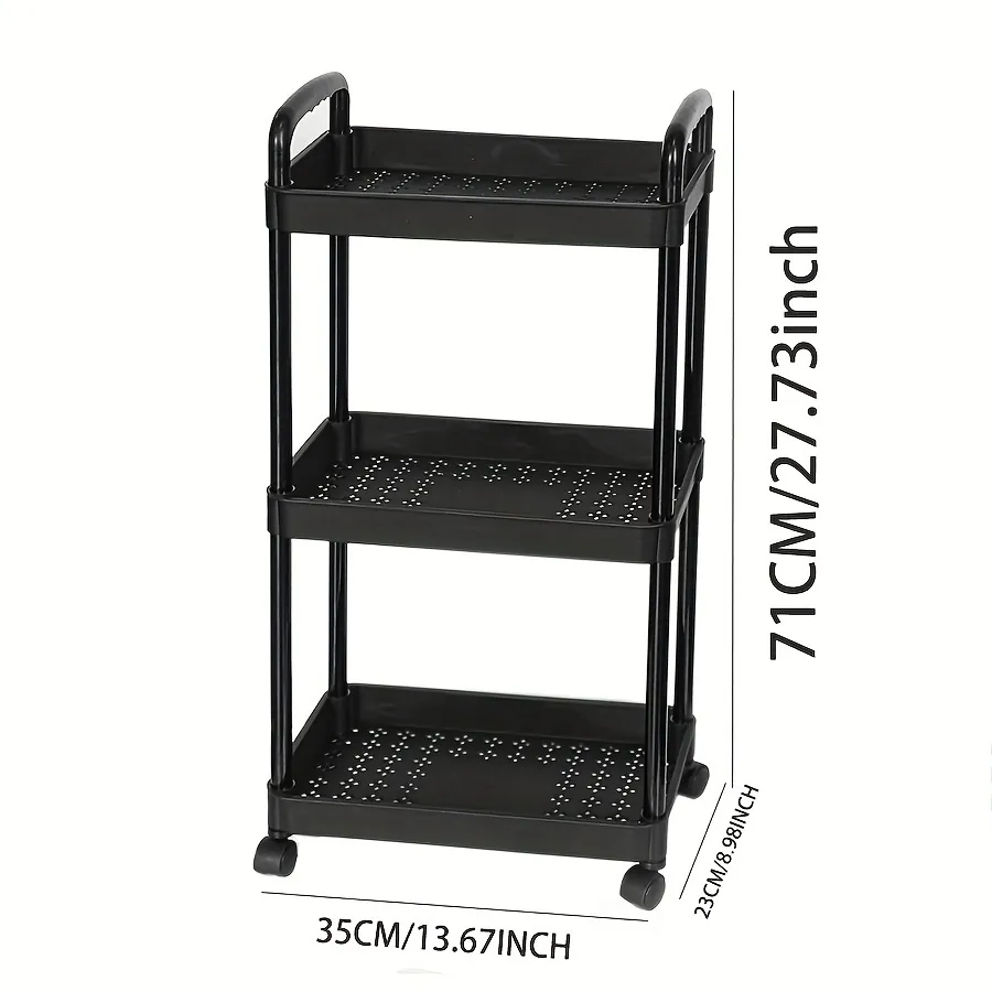 Upgrade your home organization with this Multi-Layer Kitchen Storage Trolley Rack, designed for style and convenience. Made with durable plastic and metal support, this trolley offers three spacious tiers for storing groceries, kitchen utensils, bathroom essentials, or office supplies. The rolling wheels make it easy to move around, while the ventilated tray design ensures proper air circulation. Perfect for use in the kitchen, bathroom, laundry, or pantry, this sleek and modern trolley adds a touch of functionality to any corner of your home.