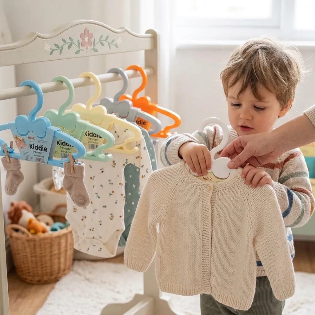 Organize your child’s wardrobe easily with this Multicolor Kiddie Hanger Set (Pack of 6). These hangers are specially designed for baby and toddler clothes, helping maintain the shape of small garments while keeping the closet neat and tidy.