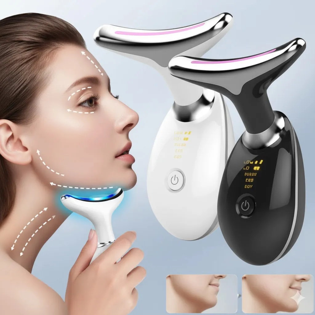 EMS Microcurrent Face & Neck Lifting Device: Anti-Aging Massager for Wrinkle Removal, Skin Tightening & Double Chin Reducer