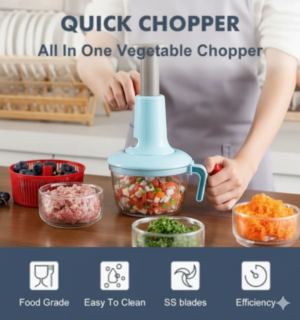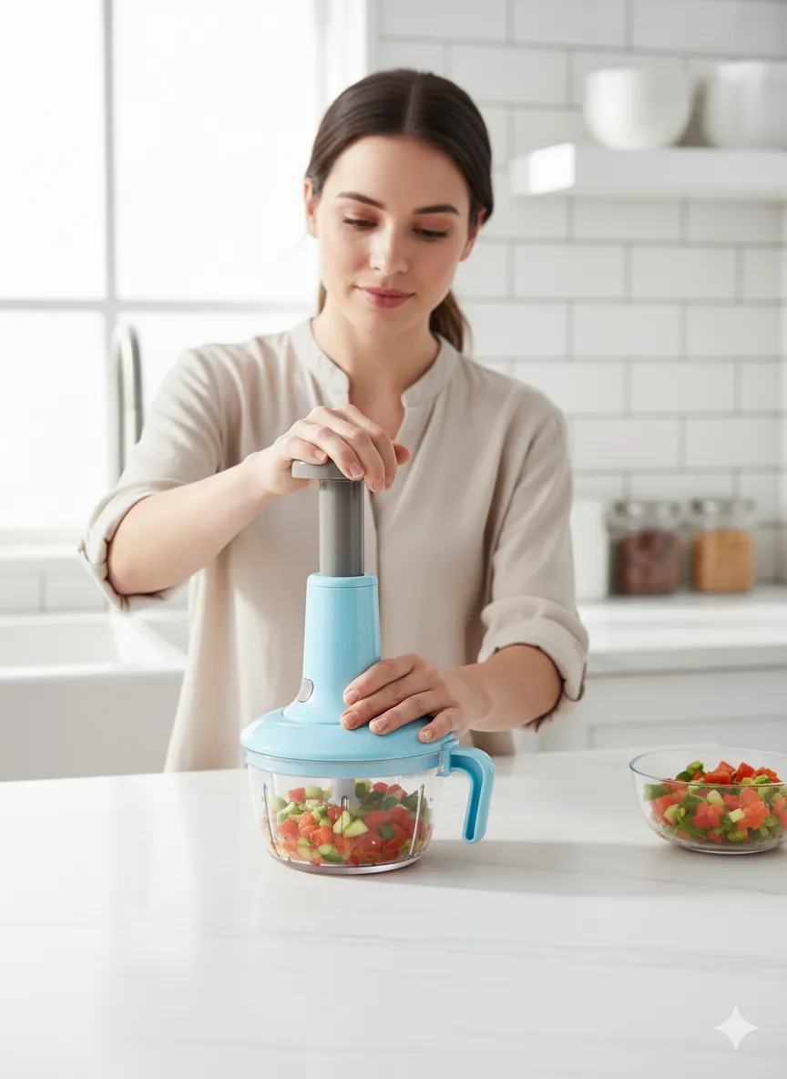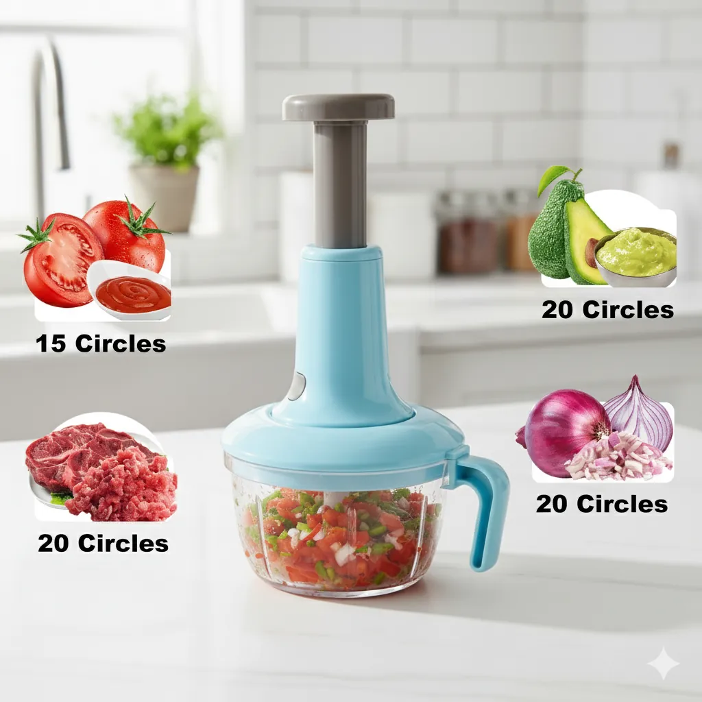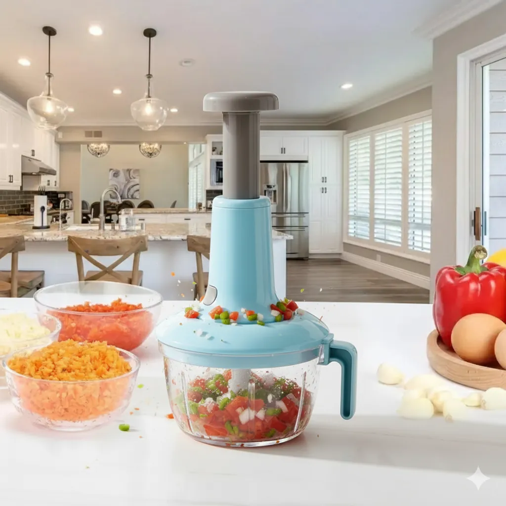 Introducing the ultimate tool for quick and easy food preparation—the Hand-Press Food Chopper. This multifunctional gadget is designed to save you time and effort in the kitchen. With a simple, ergonomic hand-press mechanism, you can chop, mince, and mix ingredients in seconds.