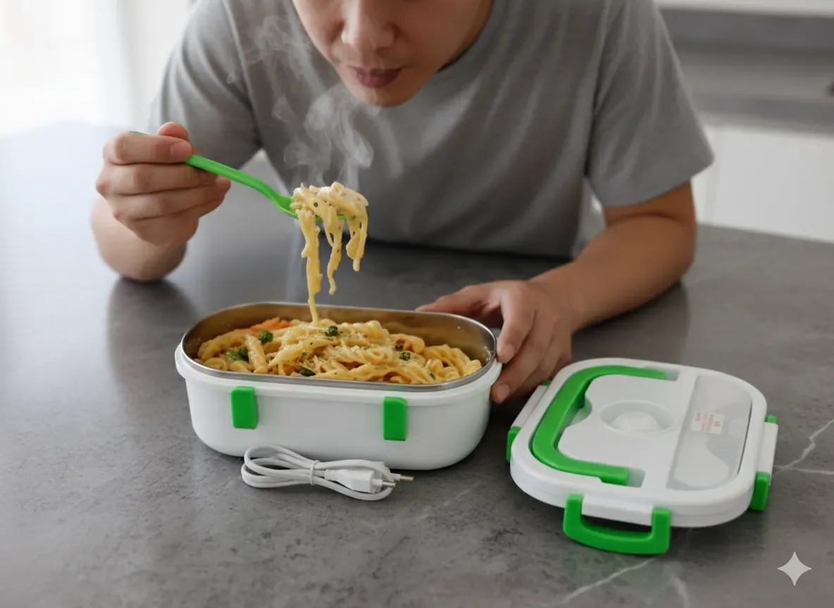 Never eat a cold lunch again! The Portable Electric Heating Lunch Box is the perfect solution for busy professionals, students, and travelers. Designed with safety and convenience in mind, this self-heating food container allows you to enjoy a hot, freshly warmed meal without needing a microwave.Dual-Use Power: Comes with two power cables (typically 110V/ 220V for home/office and 12V/24V for car/truck) so you can plug in and heat your food virtually anywhere. The built-in, low-power PTC heating element warms food gently and evenly, ensuring your meal retains its moisture and flavour in about 20-30 minutes.Premium Quality & Safety: The inner container is made from durable, food-grade 304 Stainless Steel and the exterior shell is constructed from high-quality, non-toxic, BPA-free PP plastic. The leak-proof seal and anti-scalding handle provide a secure and easy-to-carry design. Simplify your lunch routine, save money on eating out, and enjoy healthier, homemade food!